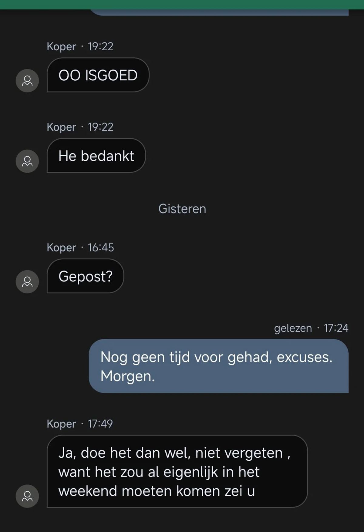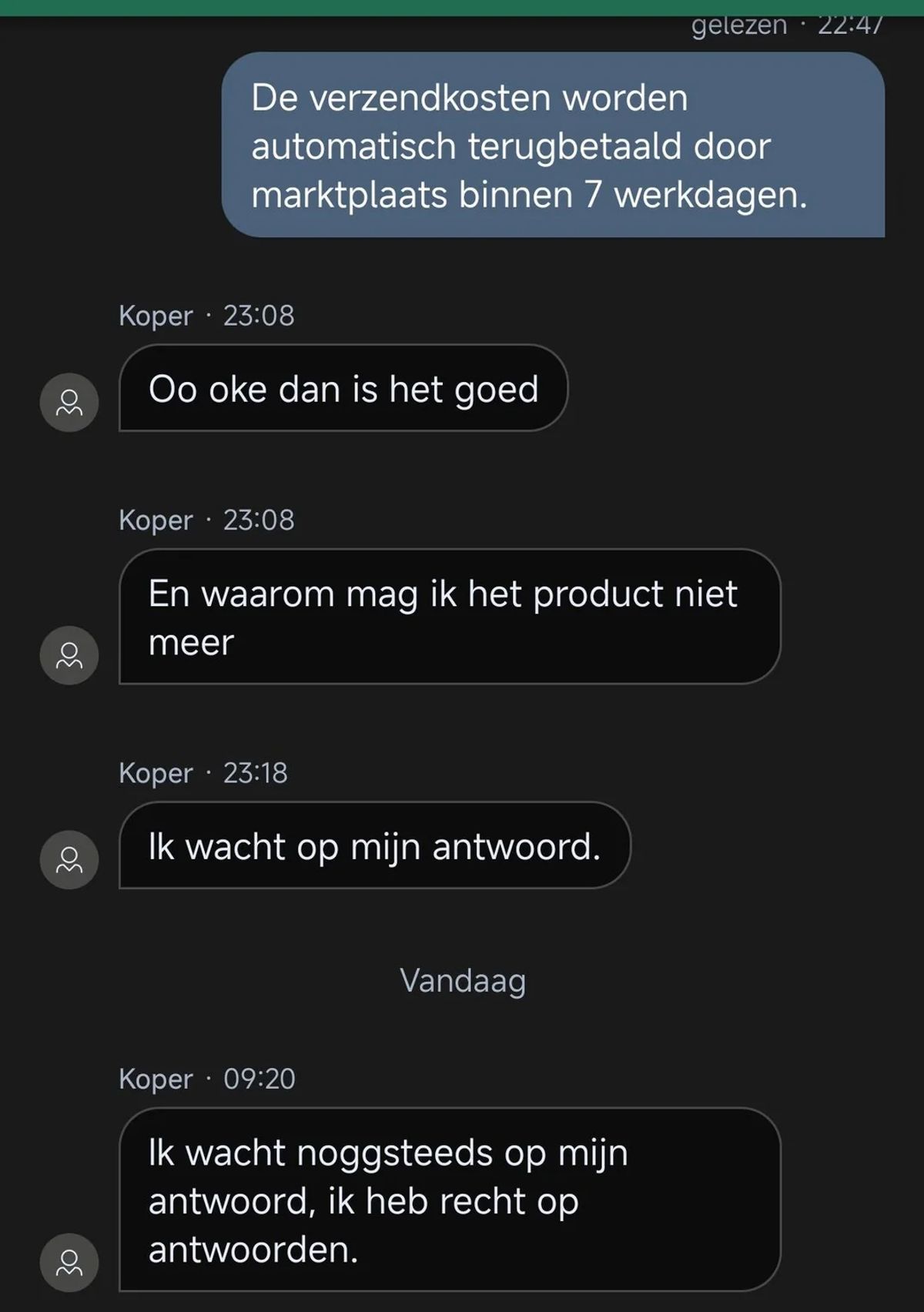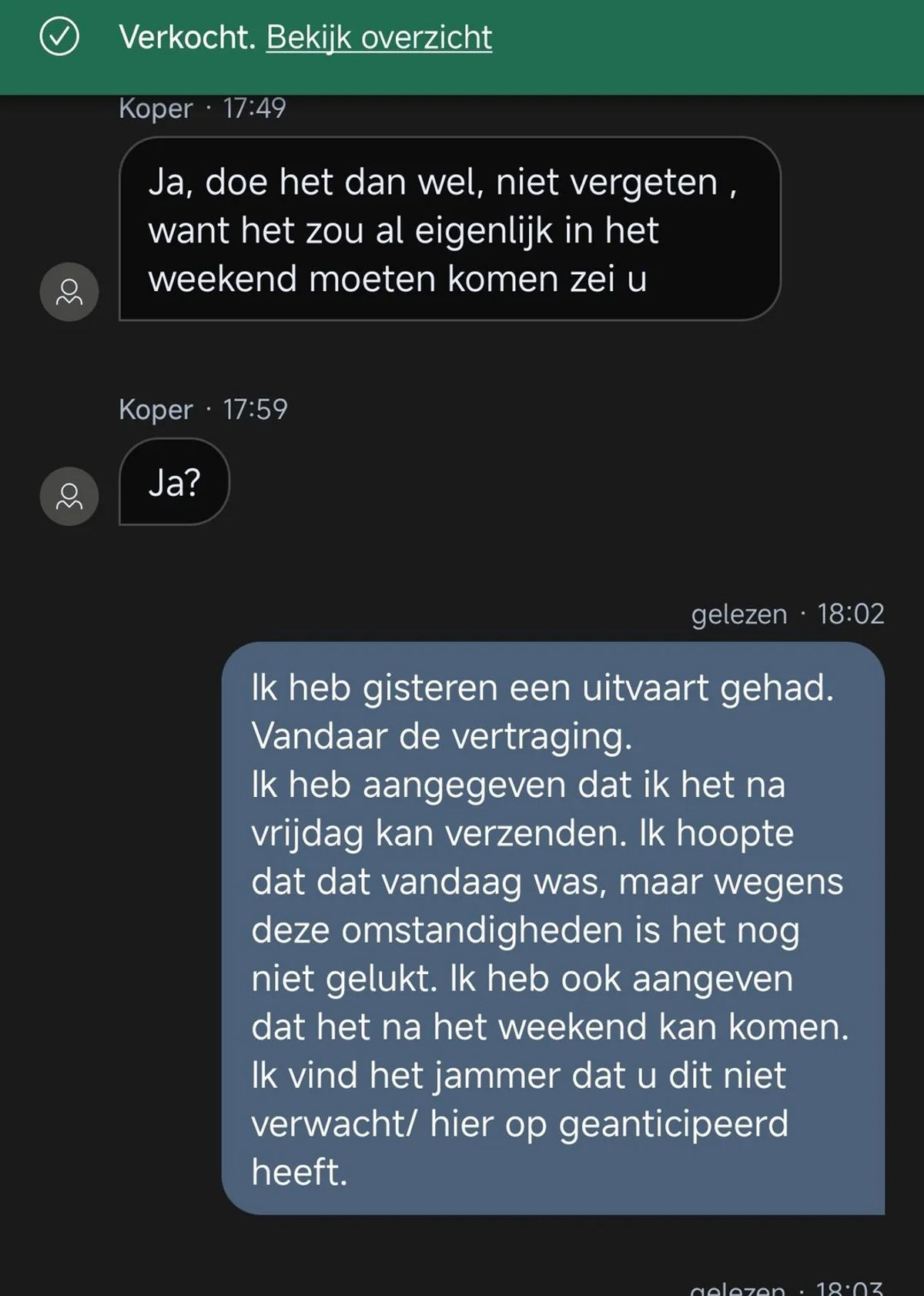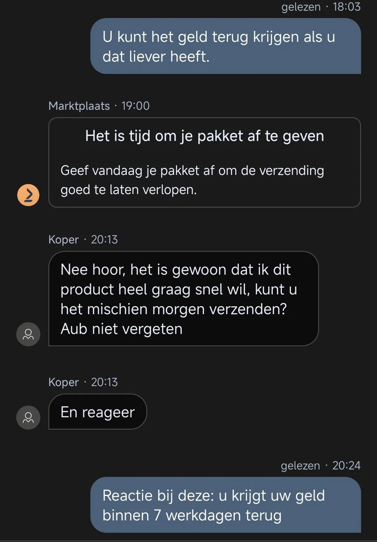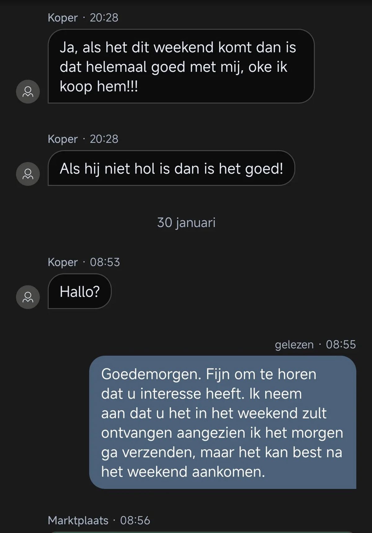 Gast wil graag een monitor kopen van iemand op Marktplaats maar een afspraak maken en nakomen is helaas niet zijn sterkste kant (14 screens)