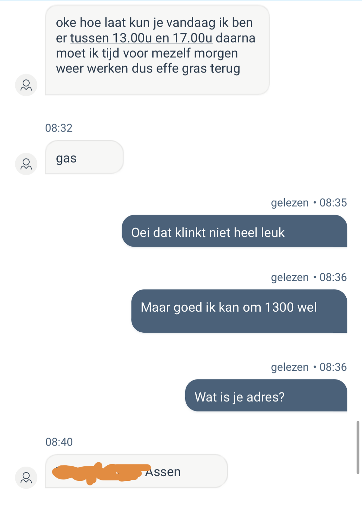 Man wil graag een gaskookplaat kopen op Marktplaats en komt met een bijzonder verzoek aan de verkoper om hem even uit de brand te helpen (6 screens)
