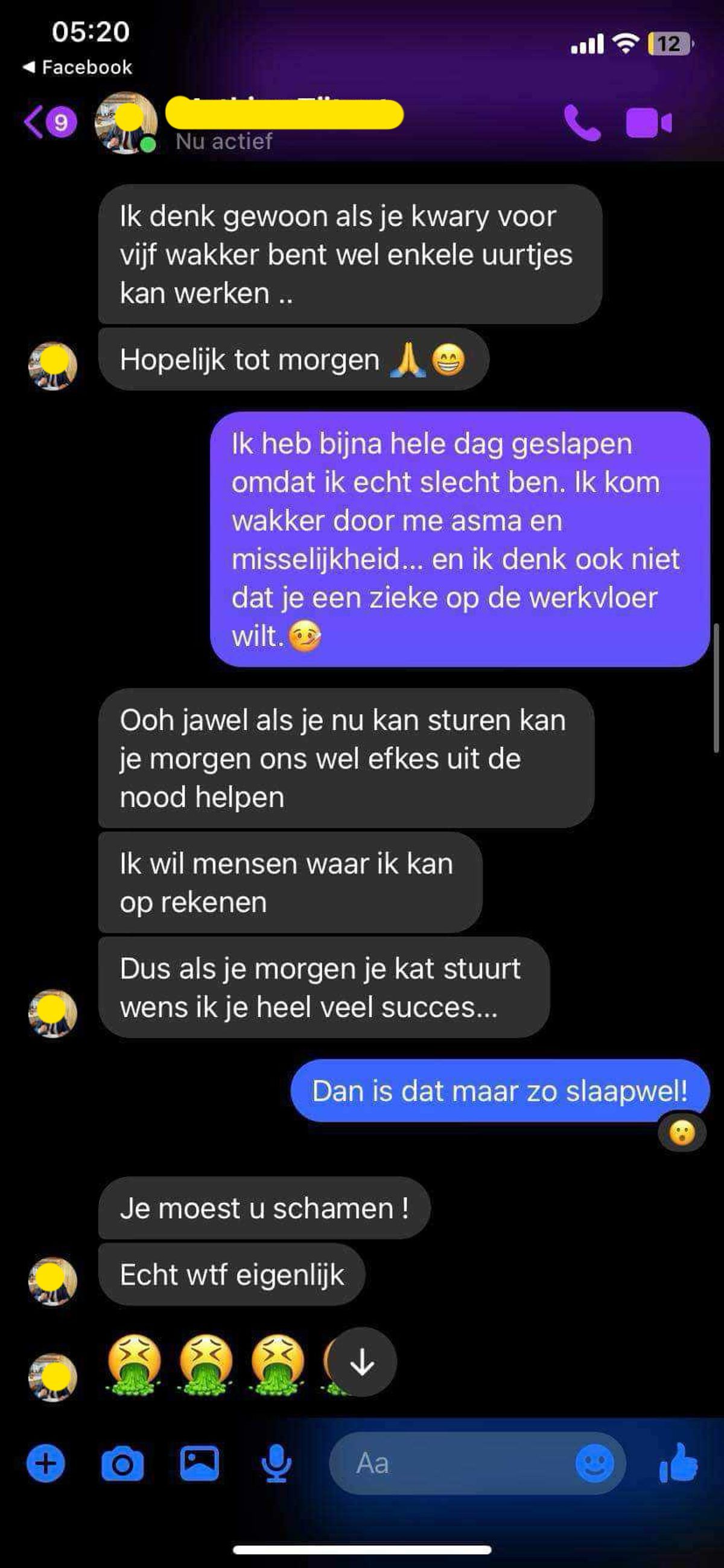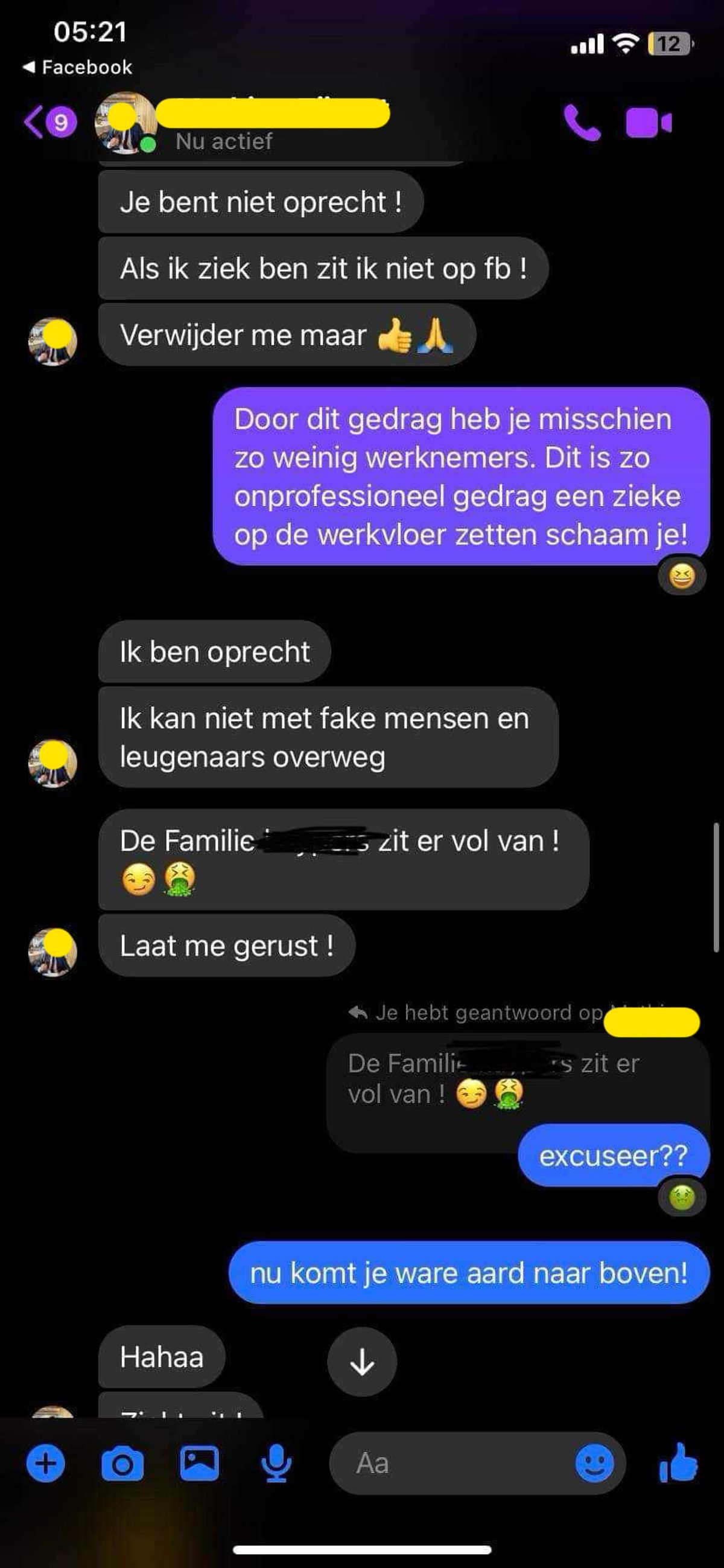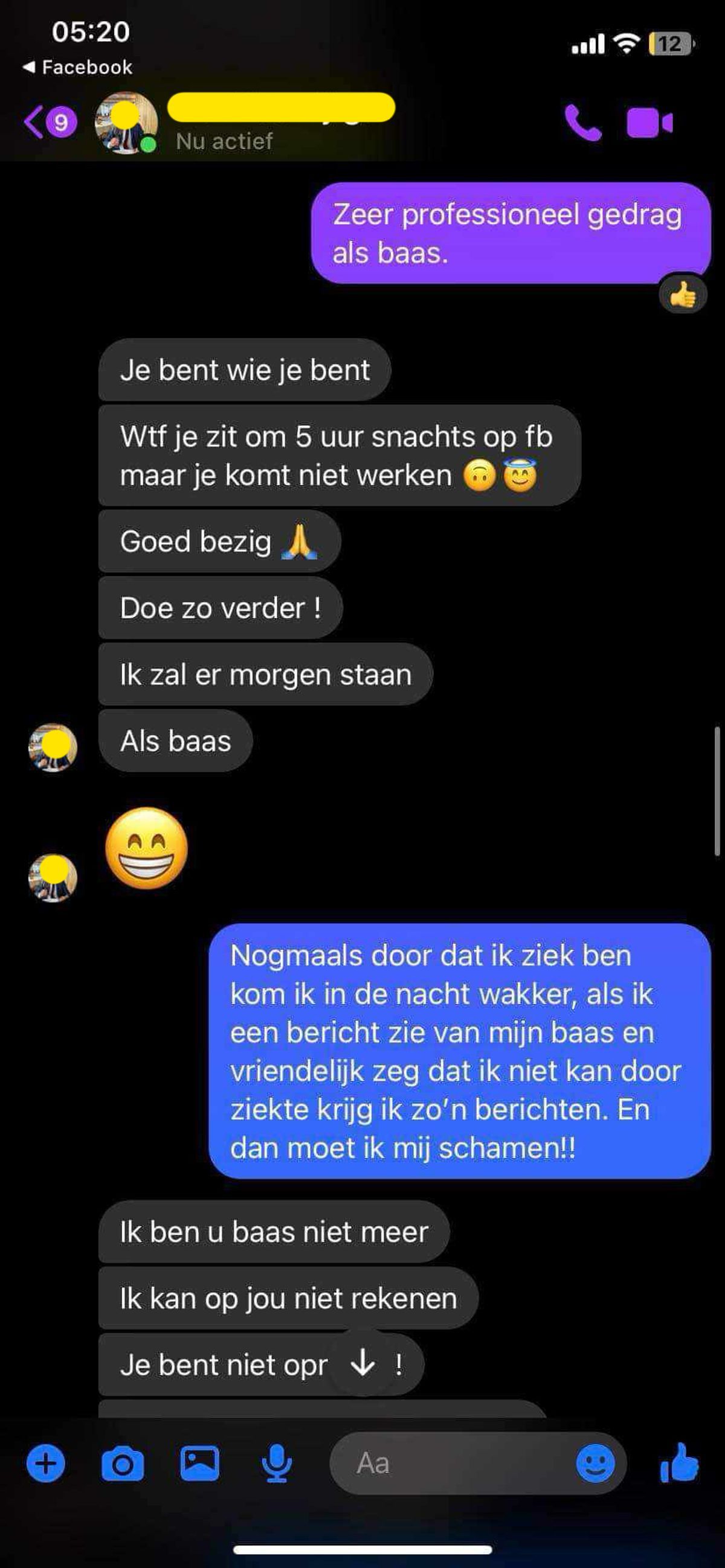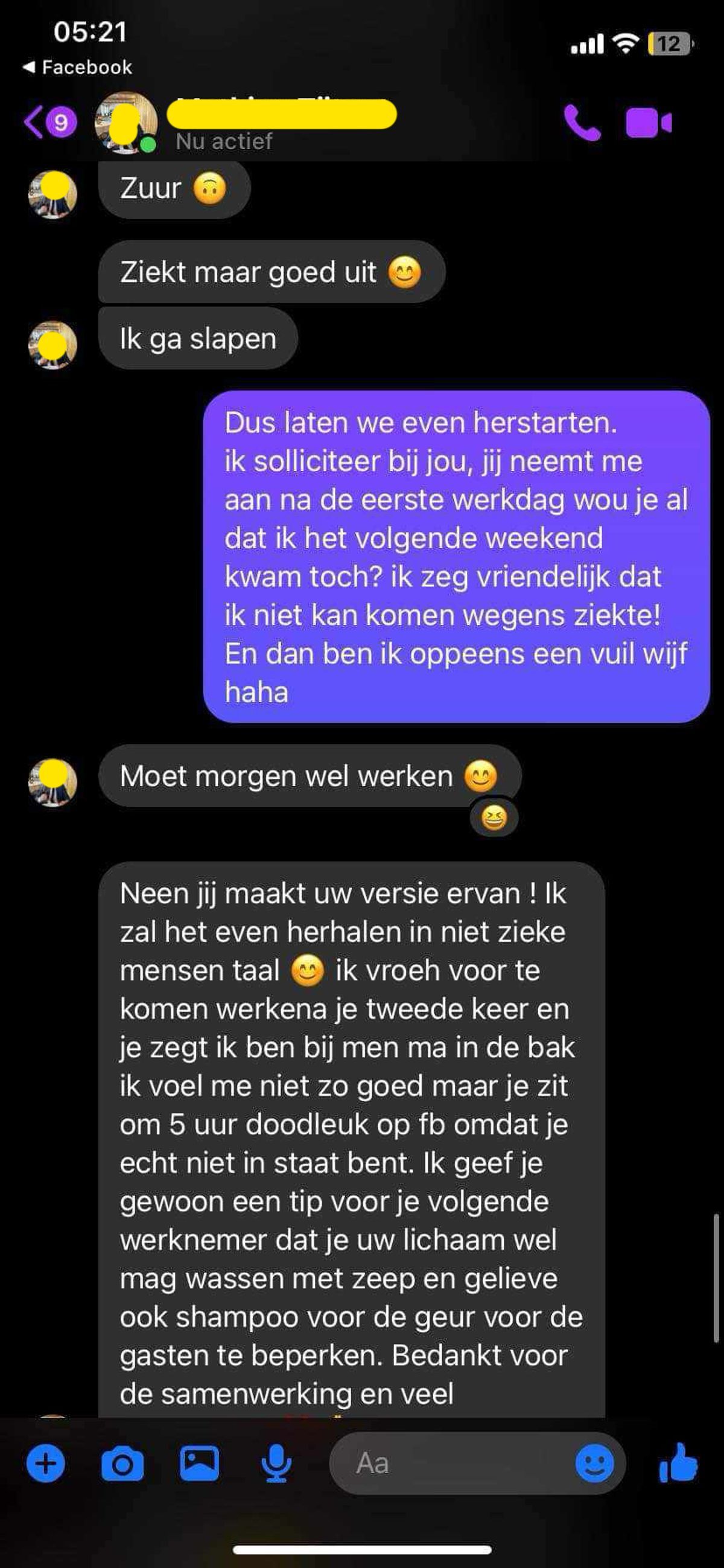 Deze restauranthouder heeft nogal een gestoorde manier van communiceren tegen een serveerster die zich ziek probeert te melden (11 screens)
