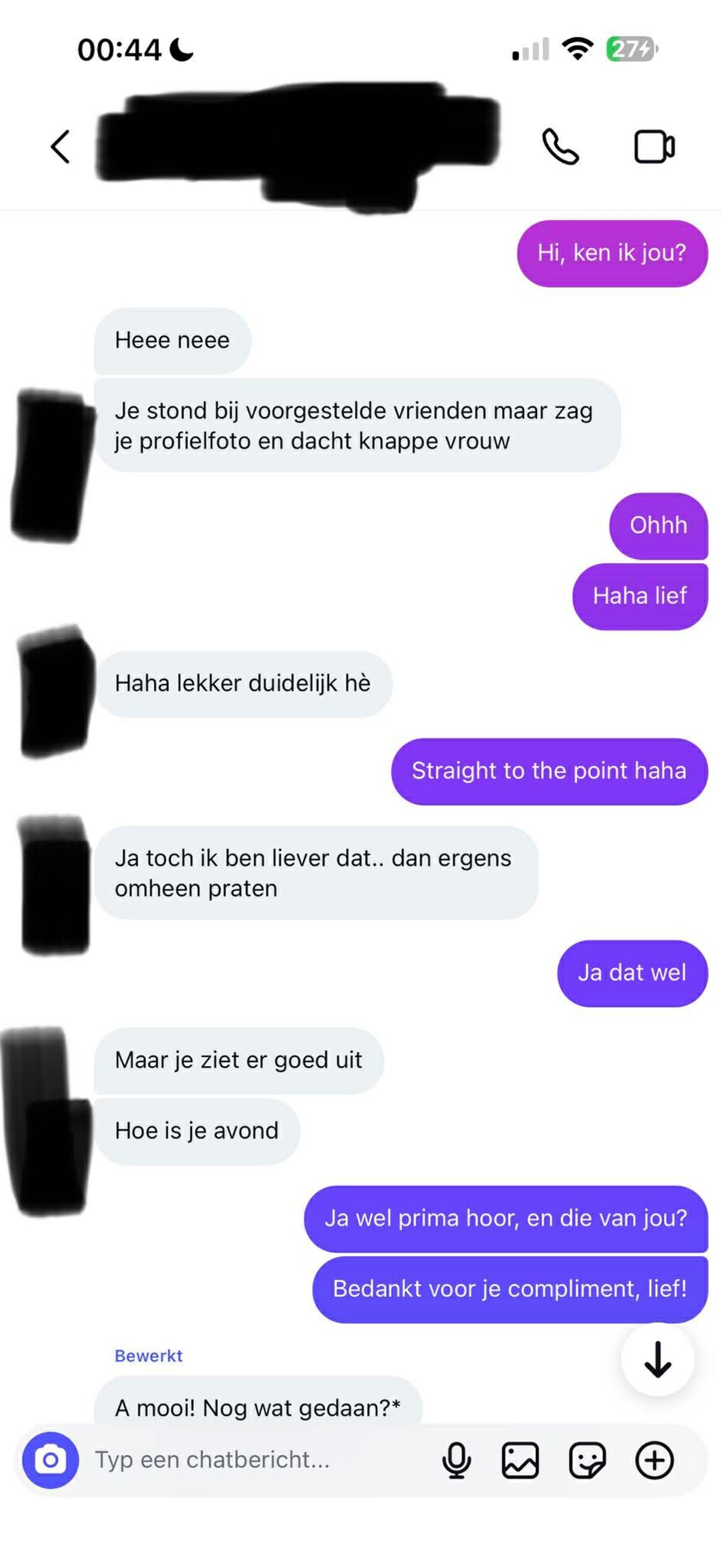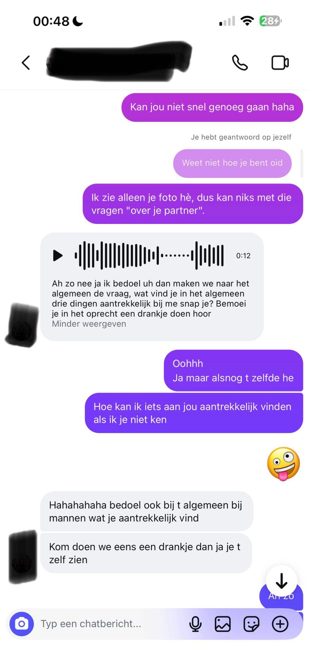Flirtende man met lekker veel doorzettingsvermogen wil heel graag daten maar dat gaat op deze manier niet echt lukken (17 screens)