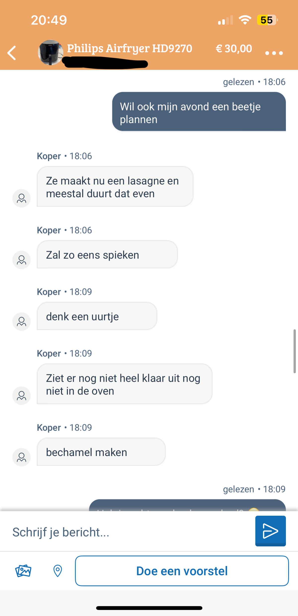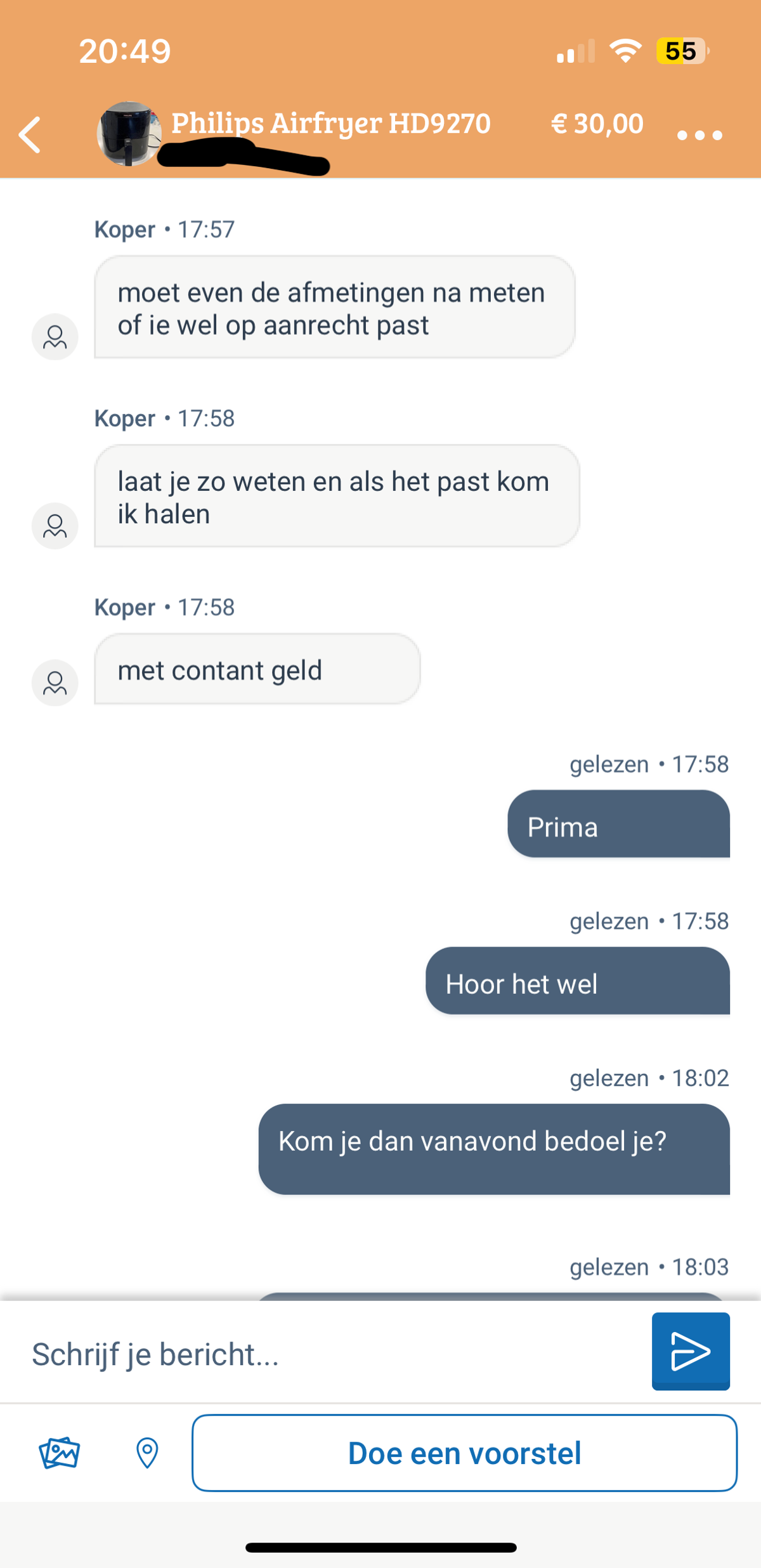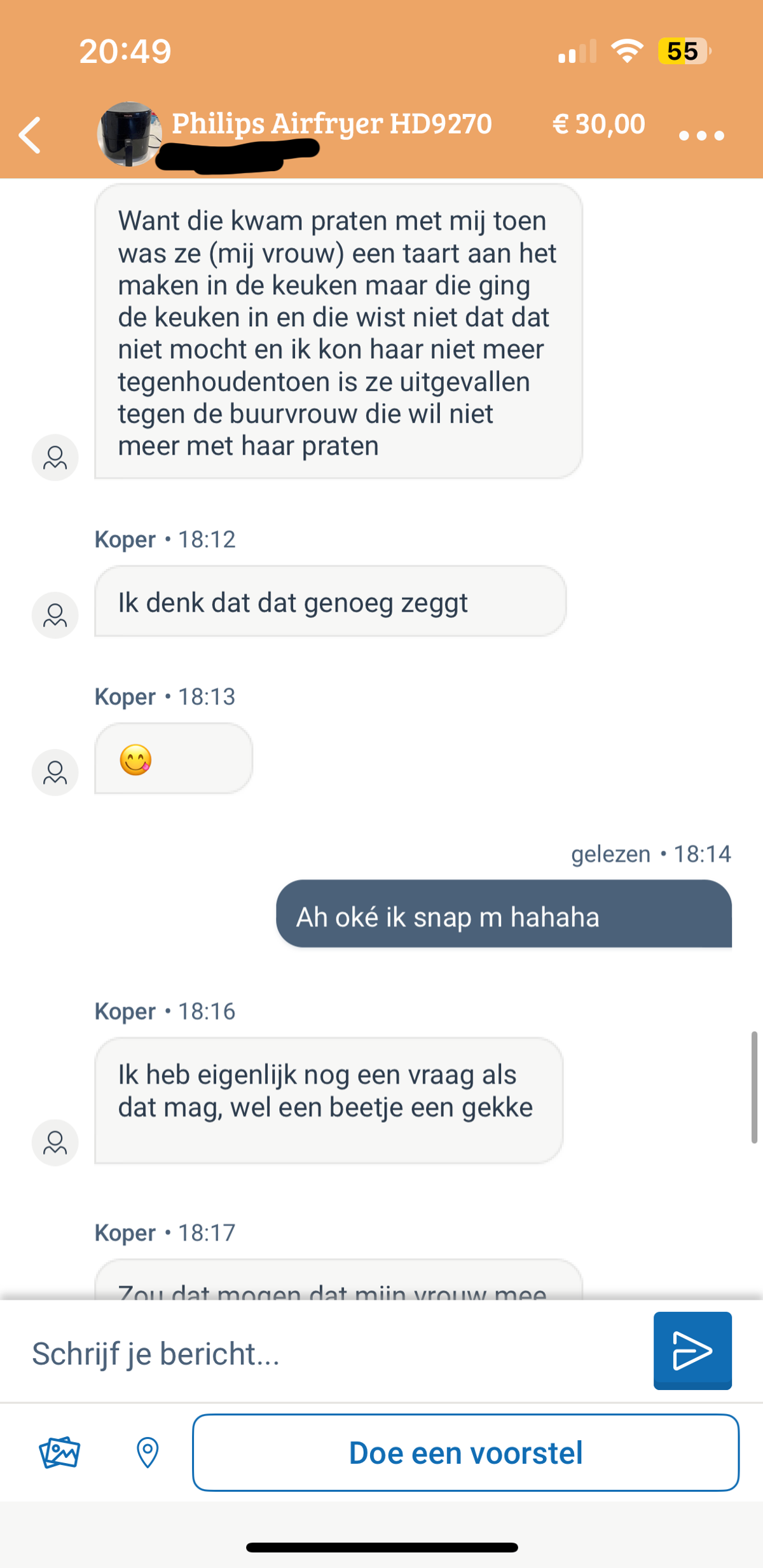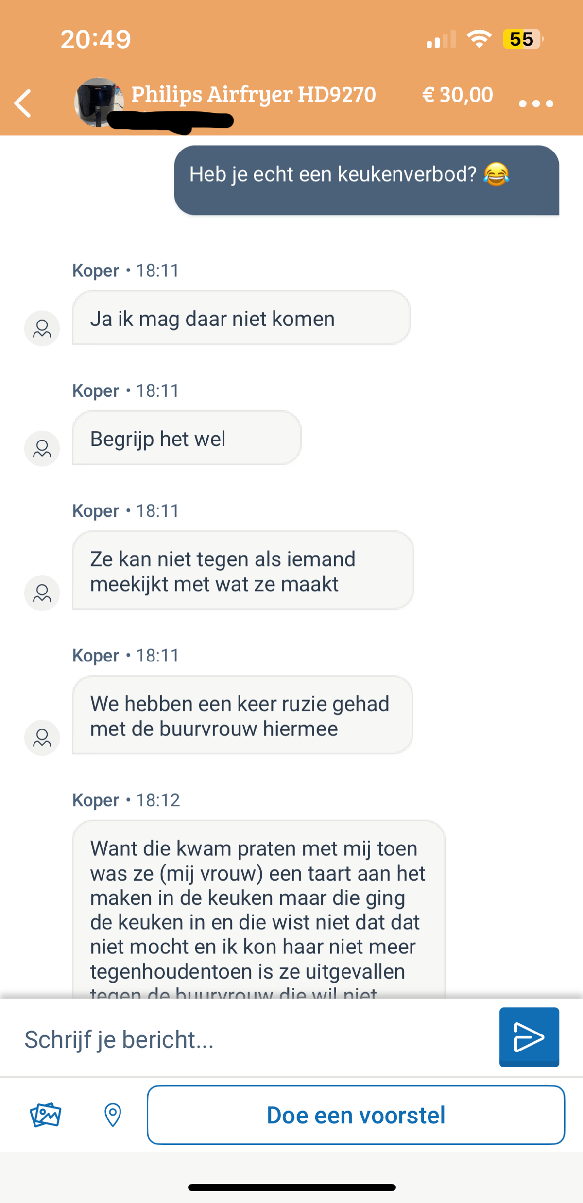 Man heeft misschien interesse in Airfryer maar kan het aanrecht niet opmeten omdat hij niet in de keuken mag komen van zijn vrouw als die aan het koken is (7 screens)