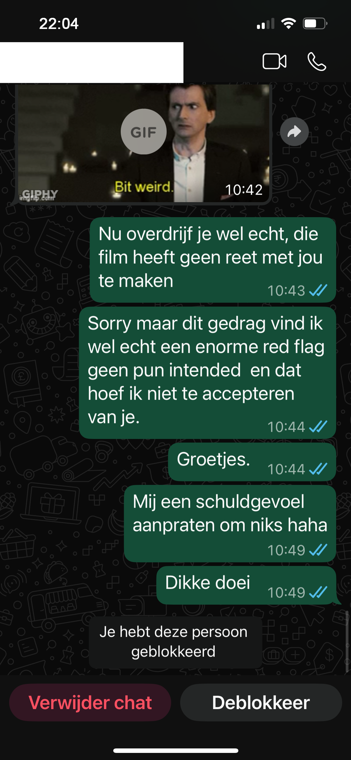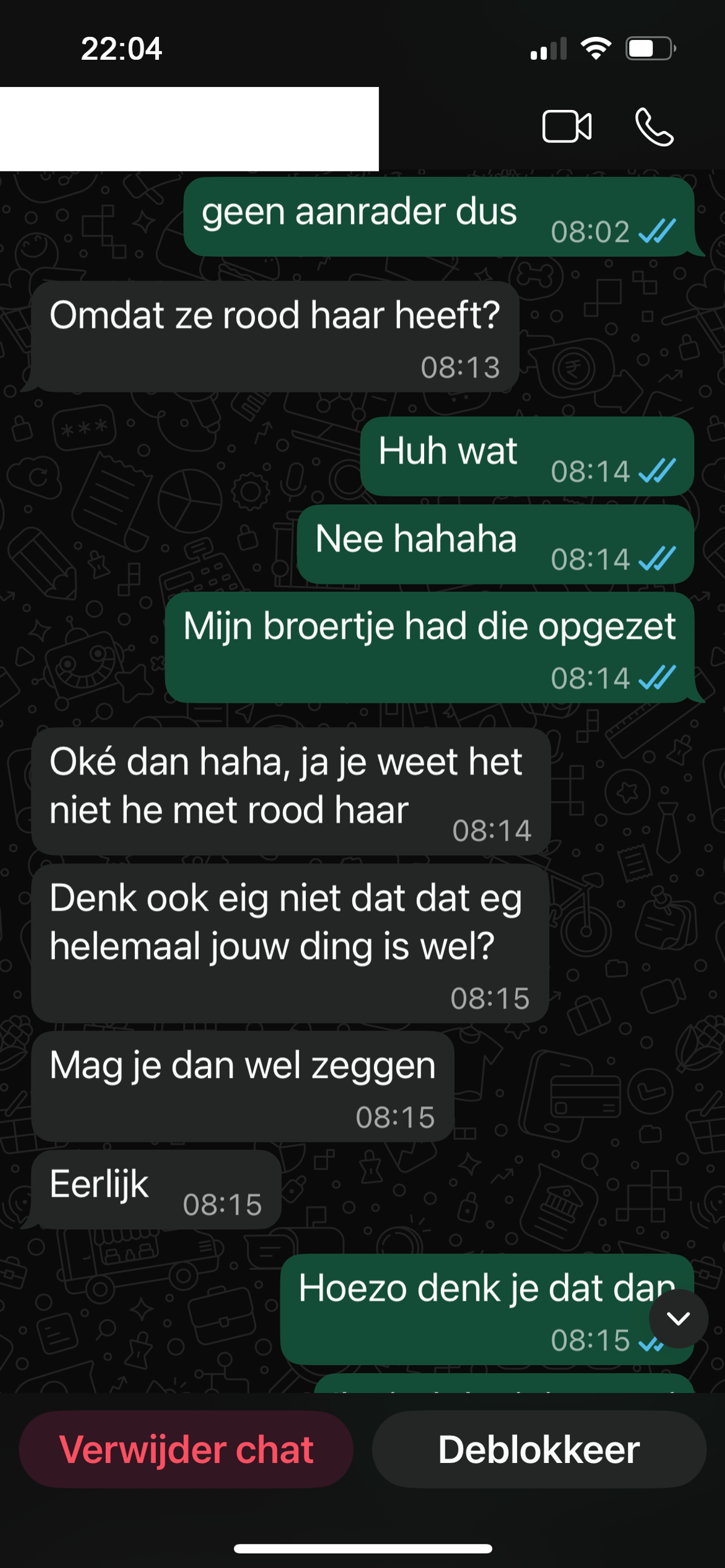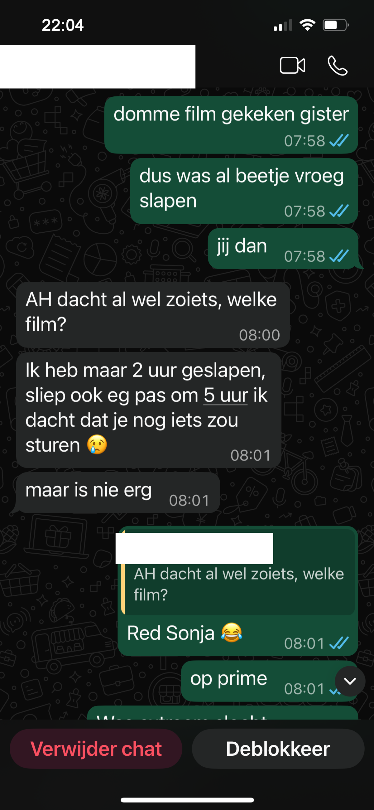 Man heeft leuk app-contact met een roodharige vrouw maar als hij een film kijkt over een roodharige vrouw die hij heel slecht vindt zijn de rapen ineens gaar (9 screens)