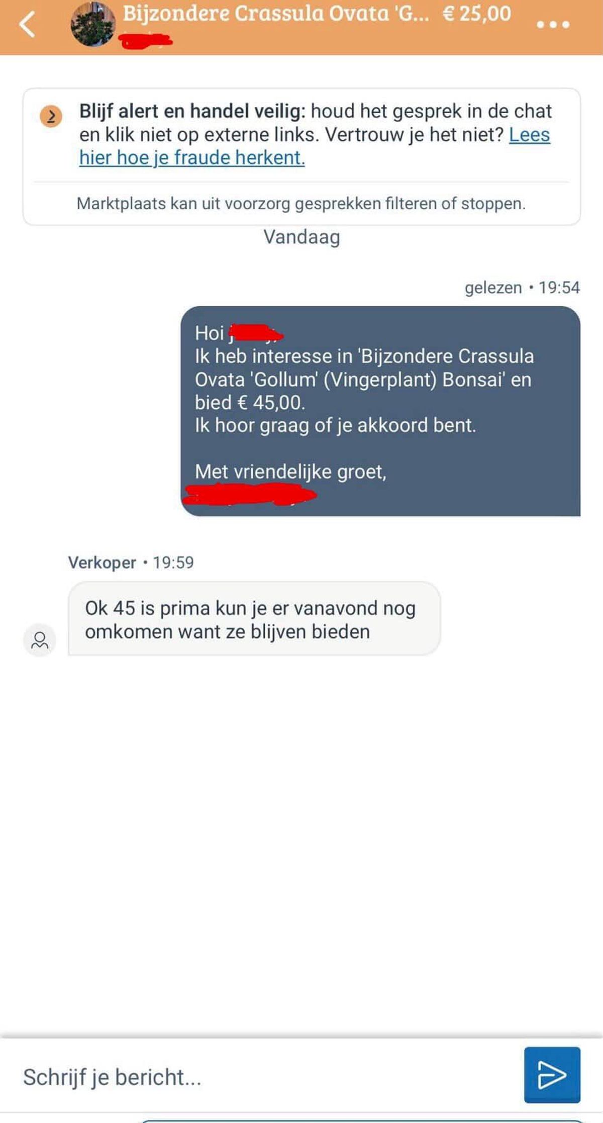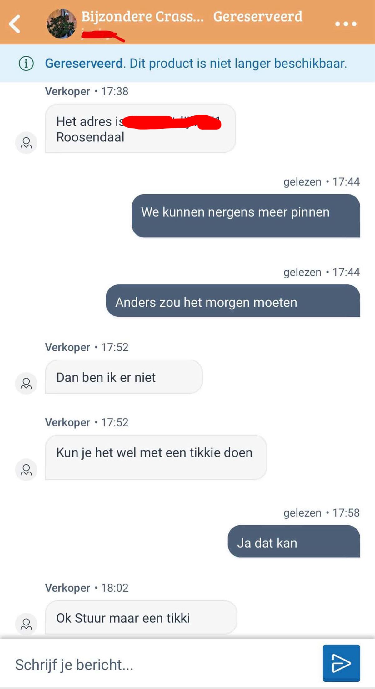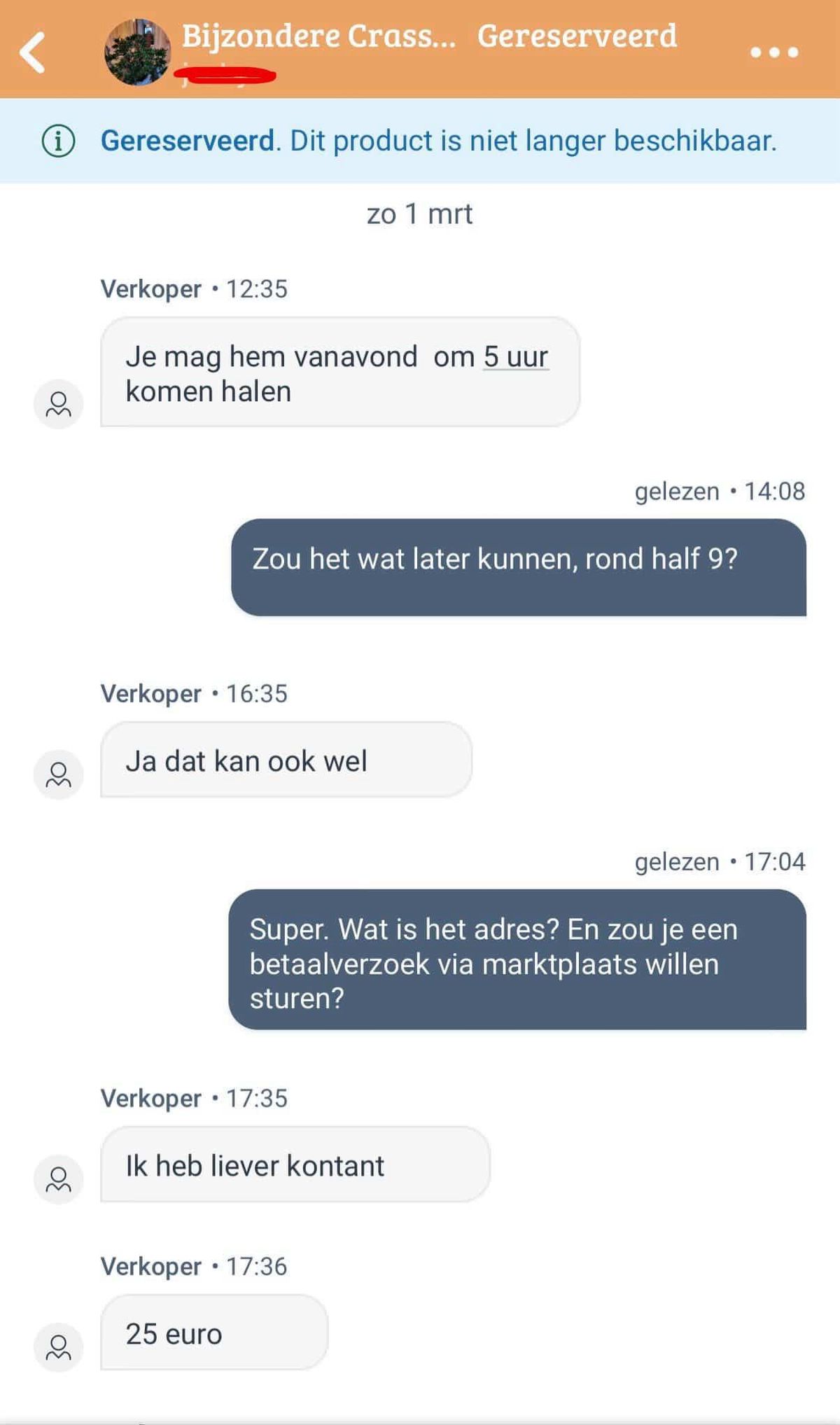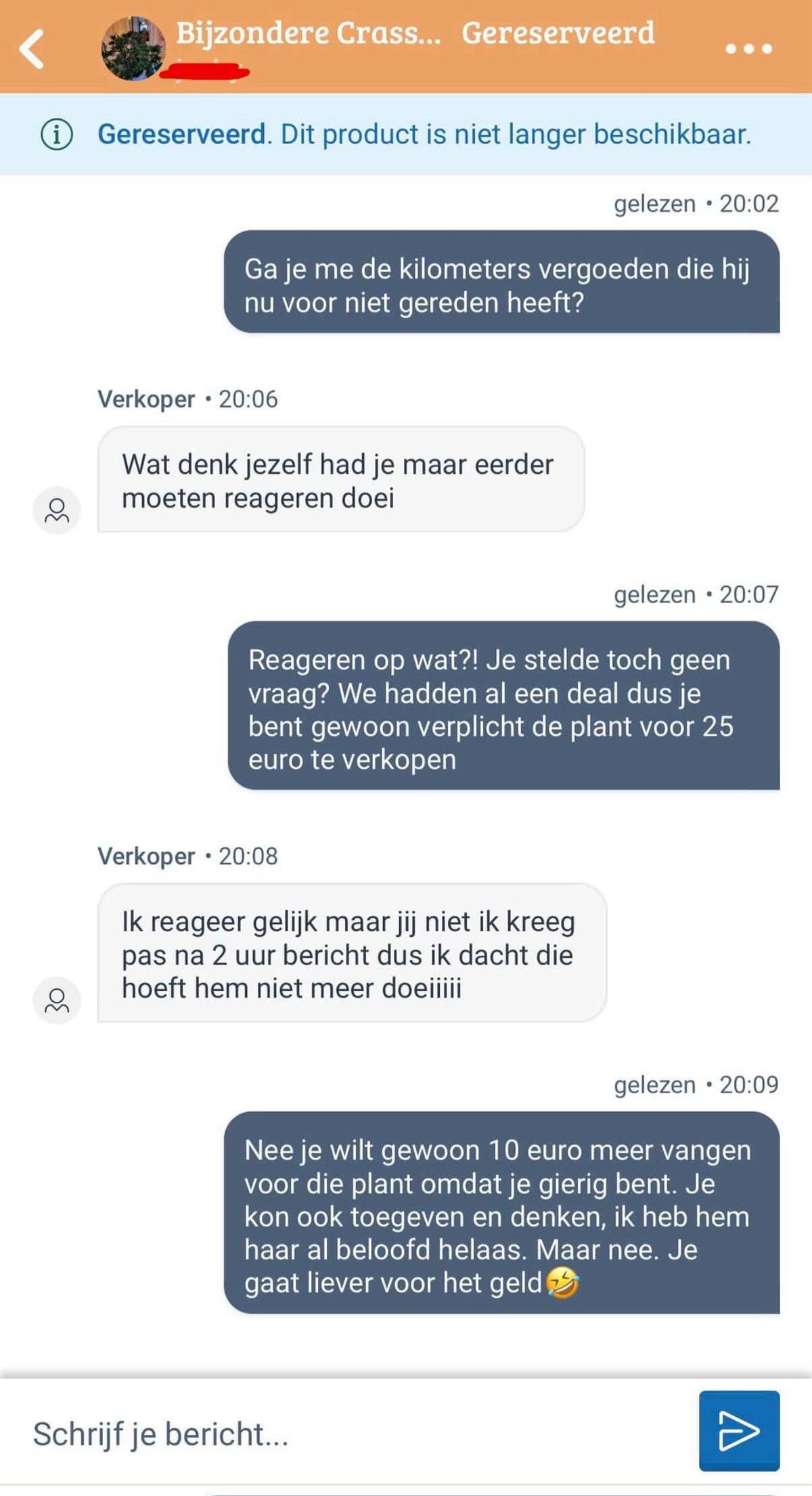 Mevrouw zegt op het laatste moment een deal van 25 voor een pant af omdat ze zogenaamd ineens een hoger bod had gekregen van iemand en de plant is ook al opgehaald. Of toch niet...? (7 screens)