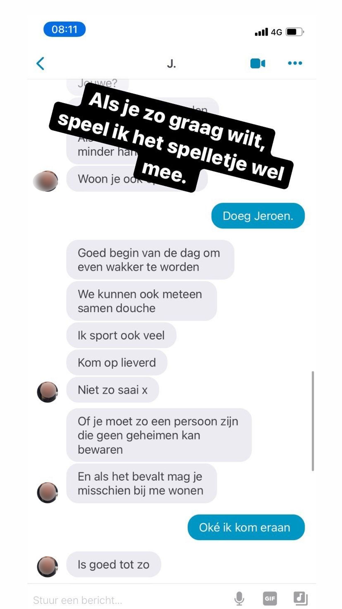 Jeroen wil graag het bed induiken met een vrouw die hij nog nooit gesproken heeft, was hier toch bijna gelukt... (8 screens)