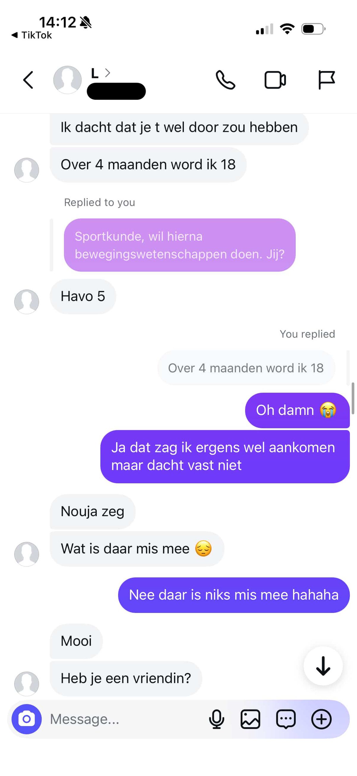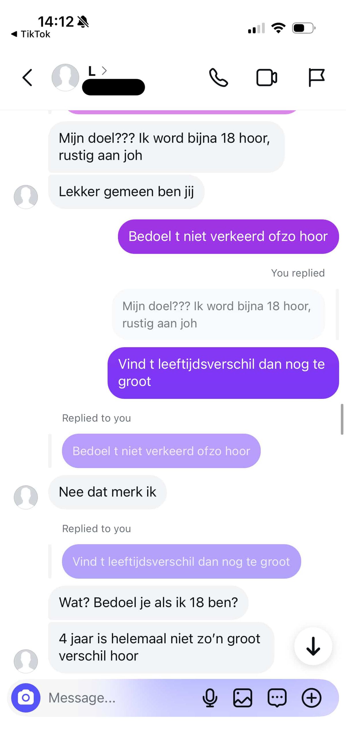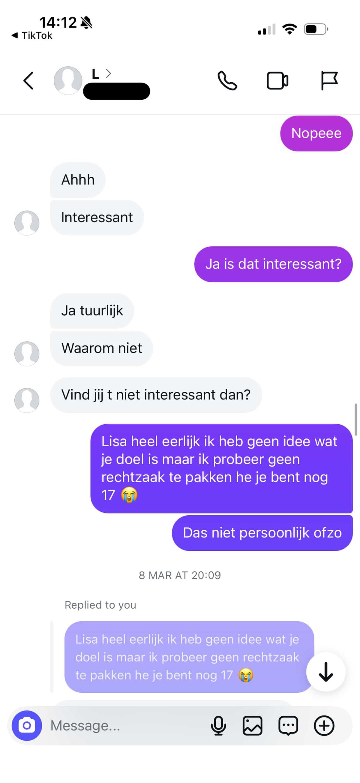 22-jarige jongen vindt leeftijdsverschil met 17-jarig meisje te groot en dat schiet bij haar compleet in het verkeerde keelgat (22 screens)