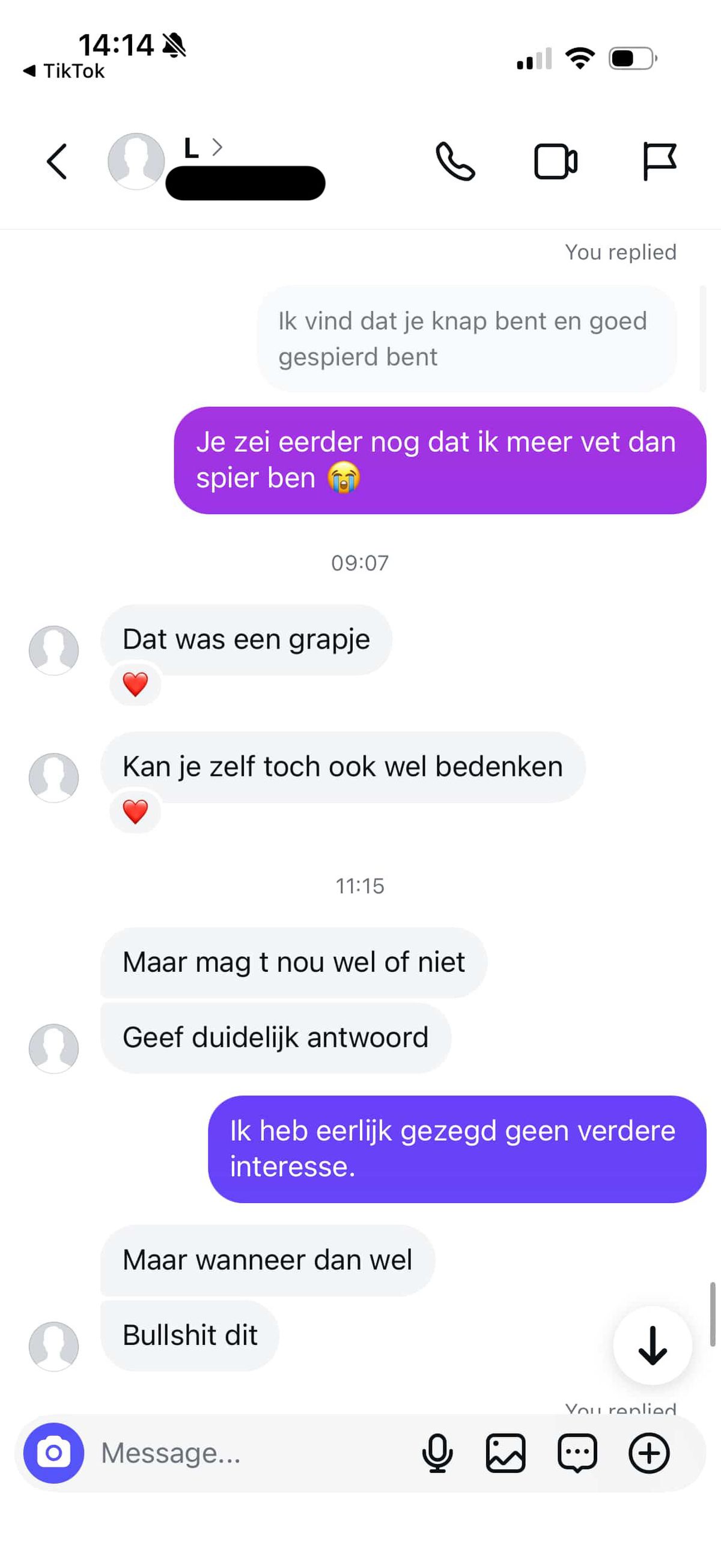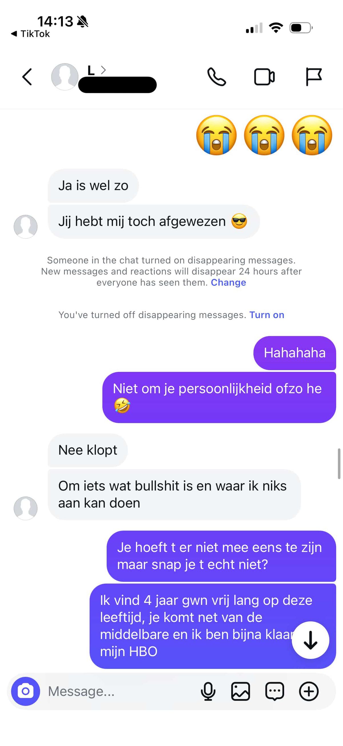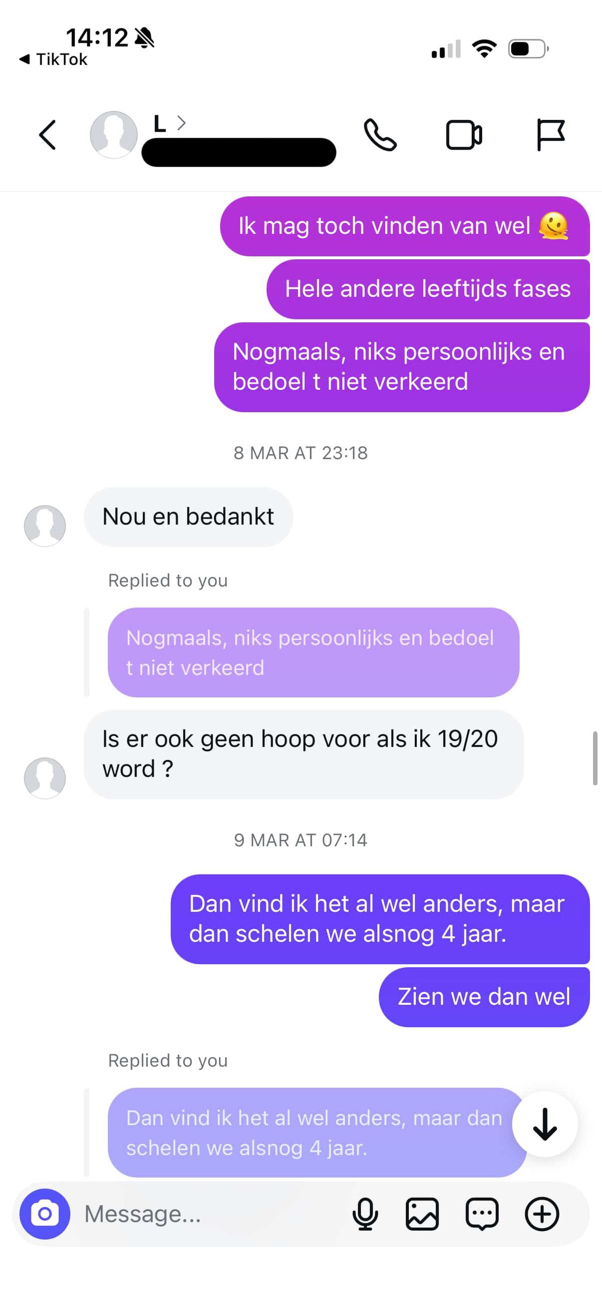 22-jarige jongen vindt leeftijdsverschil met 17-jarig meisje te groot en dat schiet bij haar compleet in het verkeerde keelgat (22 screens)