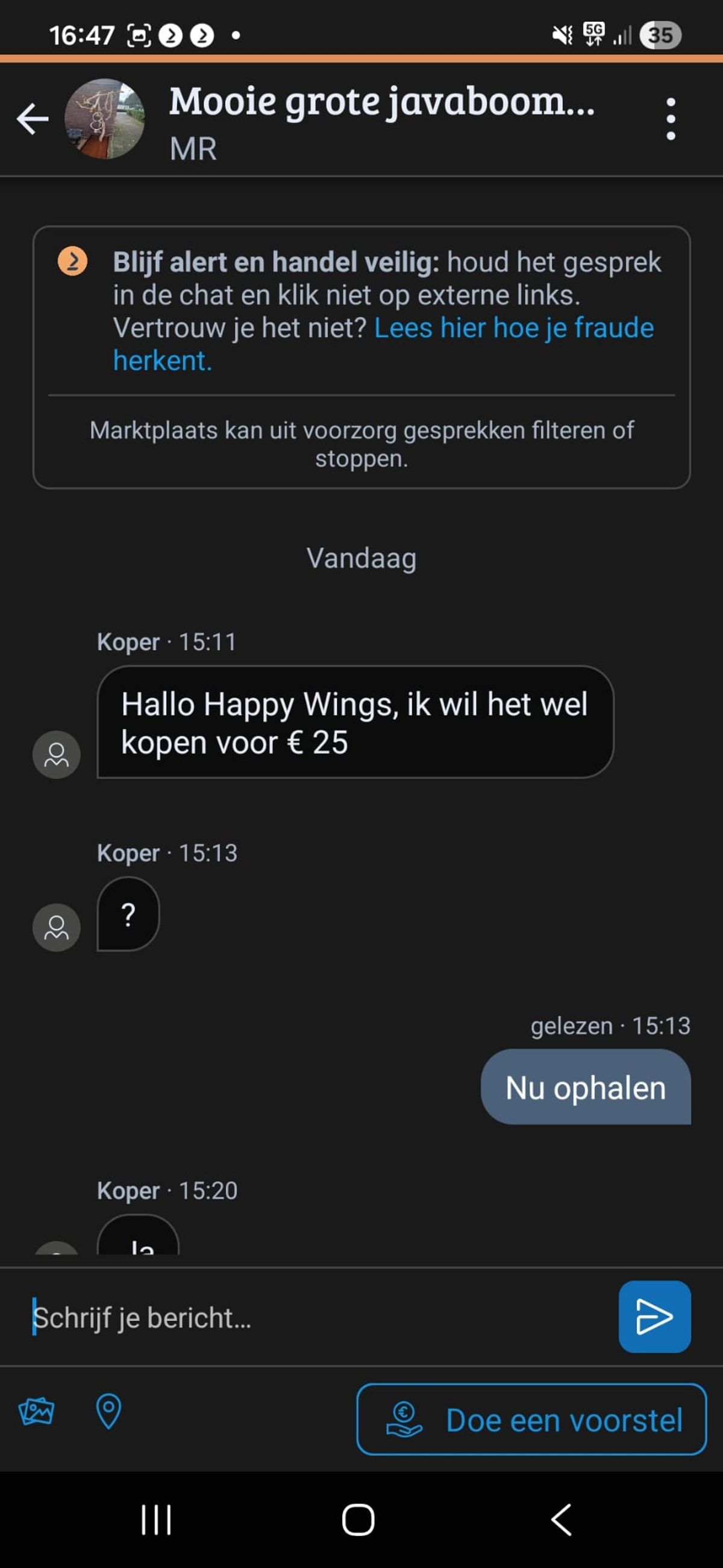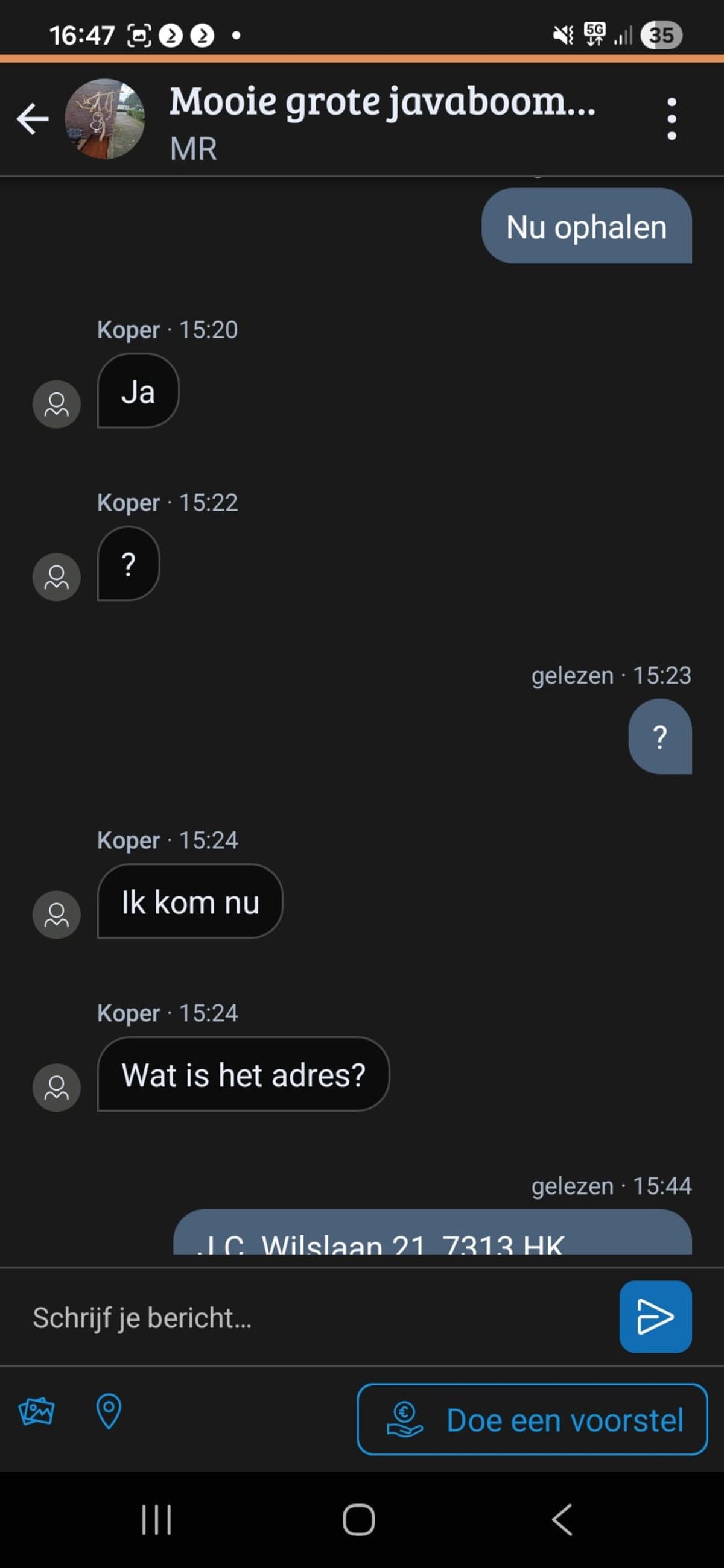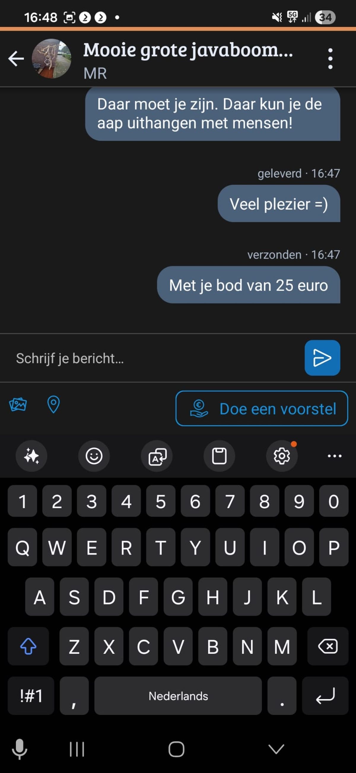Man brengt een belachelijk laag bod uit op een javaboom op Marktplaats en krijgt voor de grap het adres van de Apenheul waar hij vervolgens ook echt helemaal naartoe rijdt (7 screens)