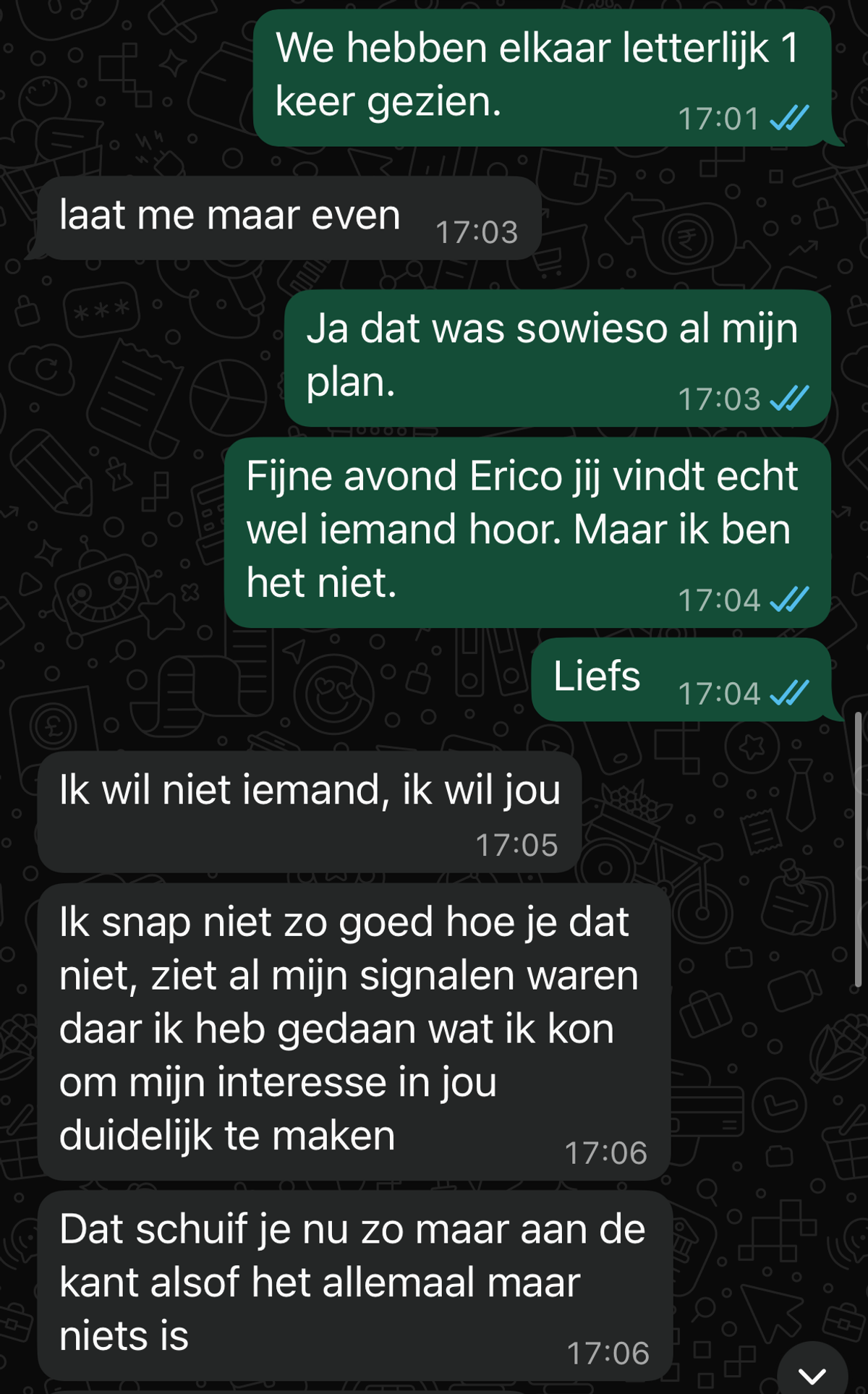 Gast wordt door zijn date na 1 keer afspreken afgewezen omdat er vanuit haar geen klik is en reageert op z'n zachtst gezegd nogal dramatisch (5 screens)