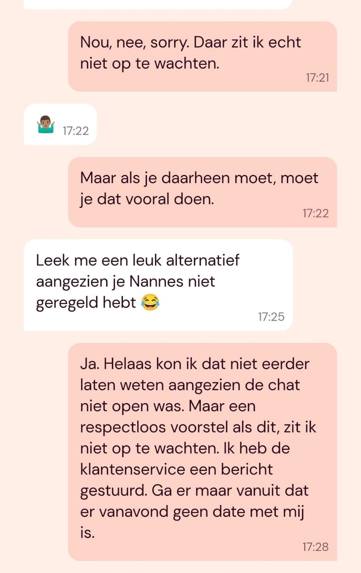 Gast zegt last-minute date af omdat hij de Facebook-pagina van zijn match heeft gevonden en dat beviel niet echt (5 screens)