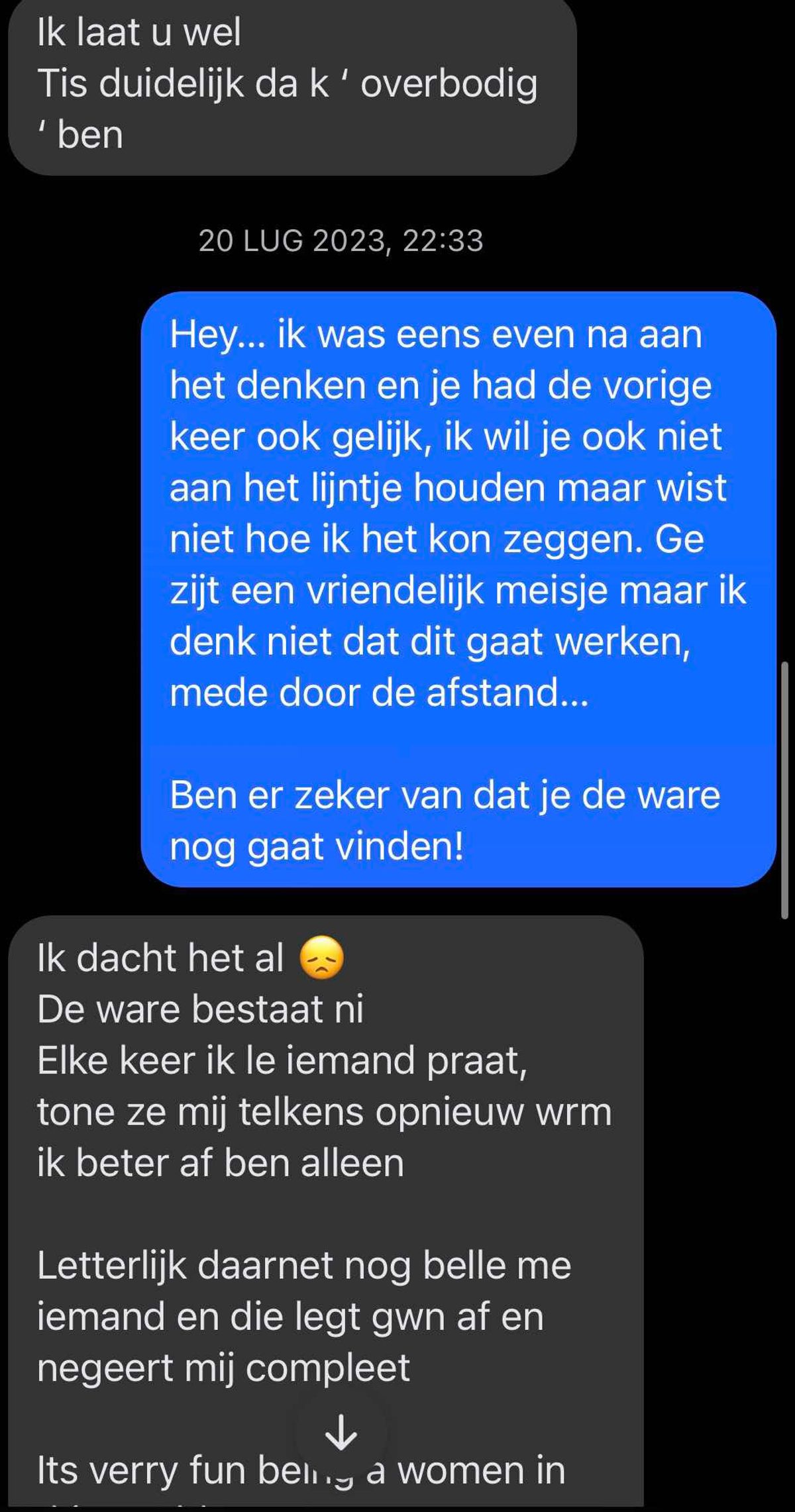 Gast wordt door zijn date na 1 keer afspreken afgewezen omdat er vanuit haar geen klik is en reageert op z'n zachtst gezegd nogal dramatisch (5 screens)