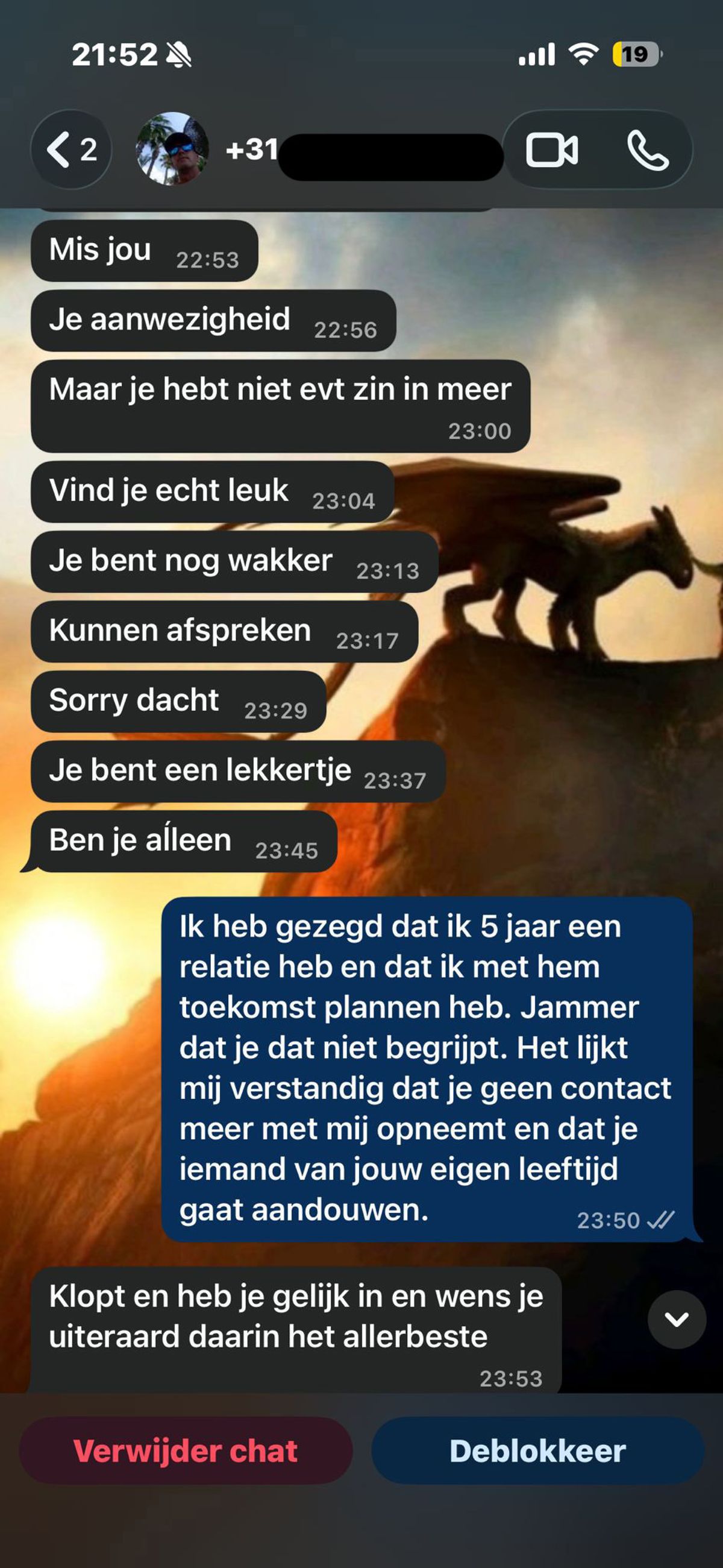 Meisje wordt aangesproken op WhatsApp door een 20 jaar oudere ex-collega die haar mist en het gesprek eindigt helaas niet echt normaal ( 9 screens)