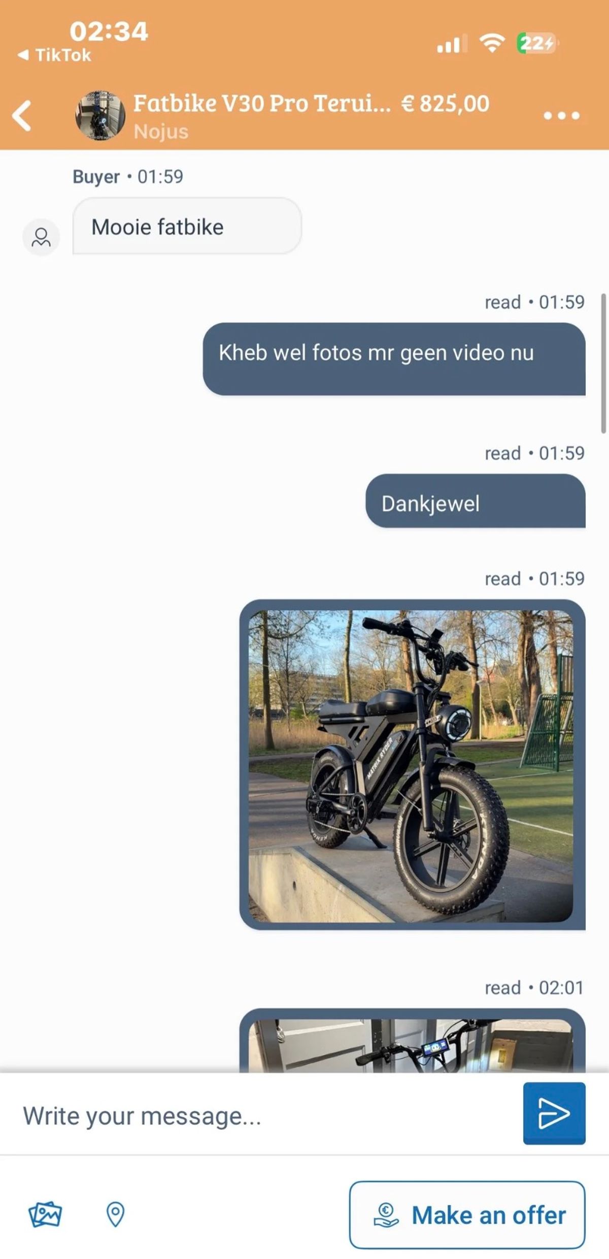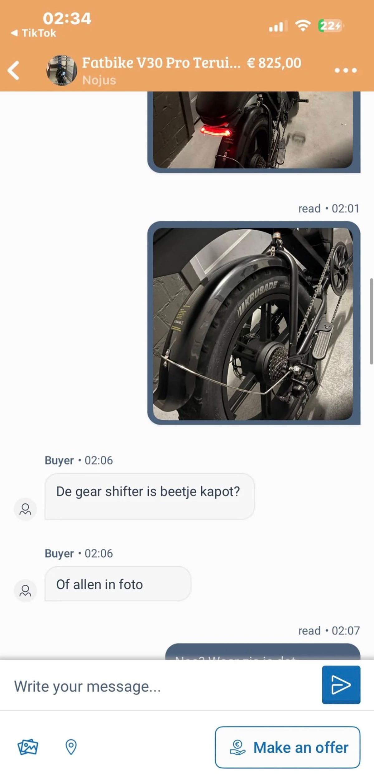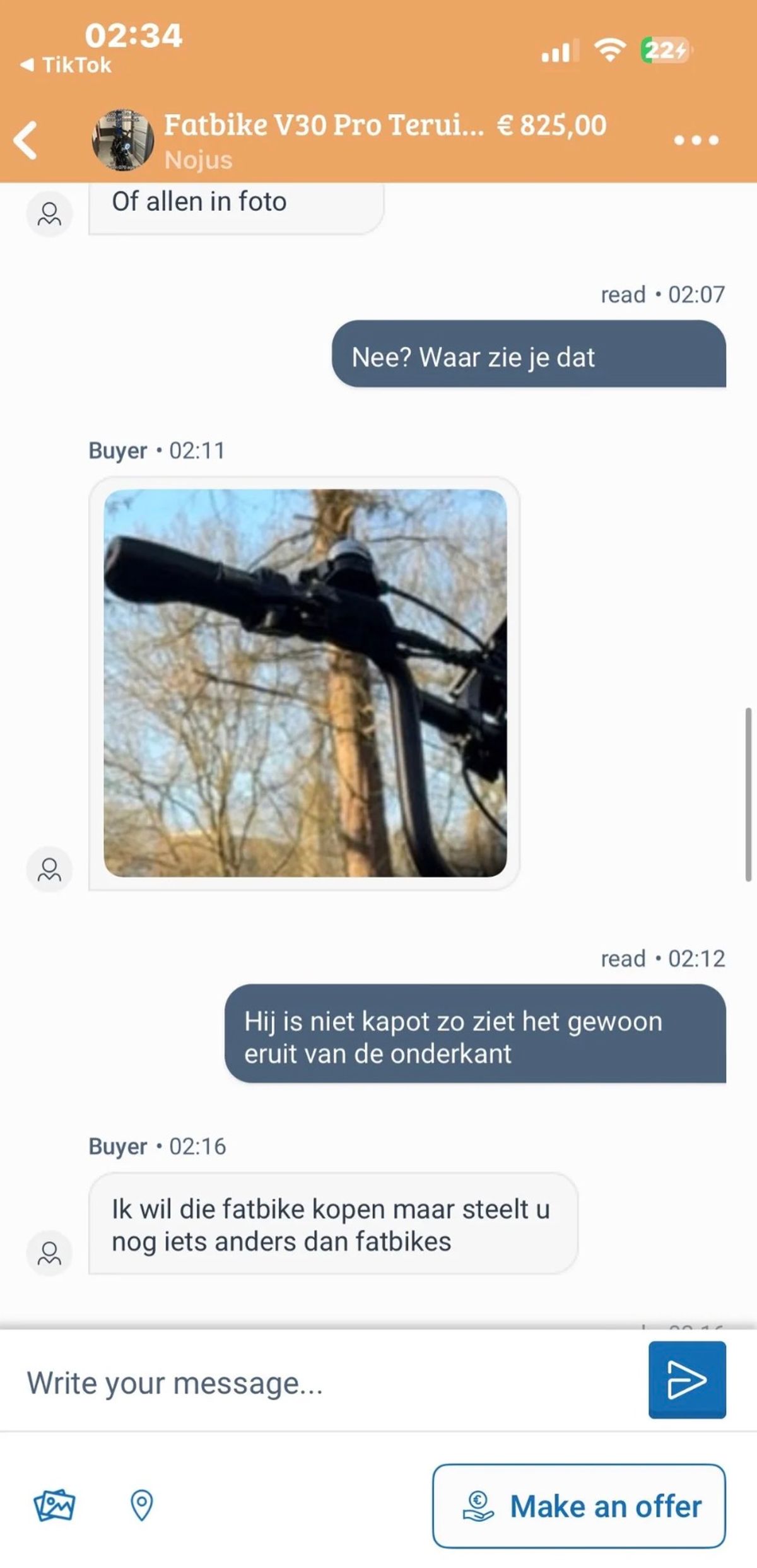 Dit is hoe een gemiddeld gesprek tussen twee fatbike-liefhebbers verloopt in de Marktplaats-chat (7 screens)