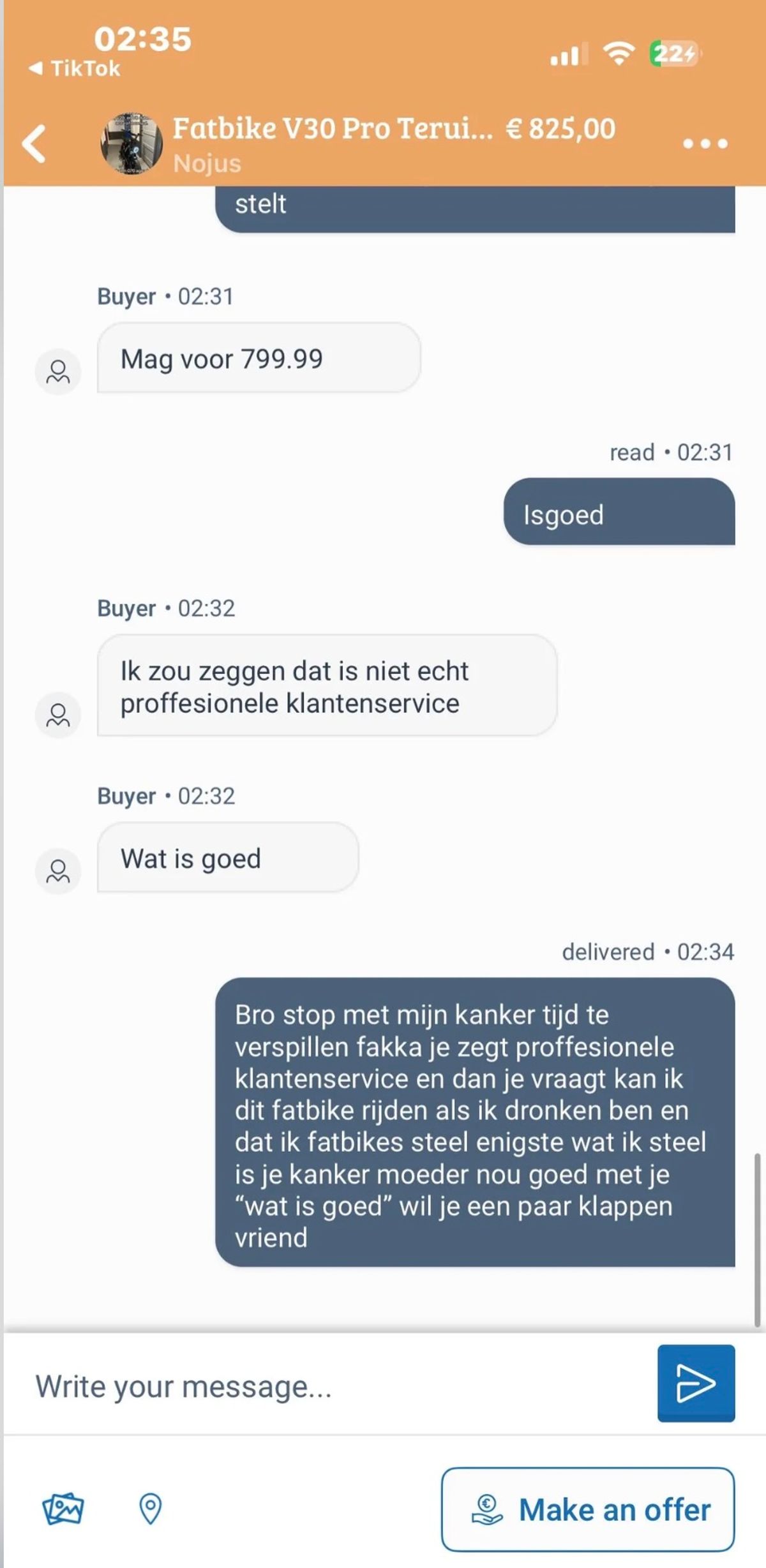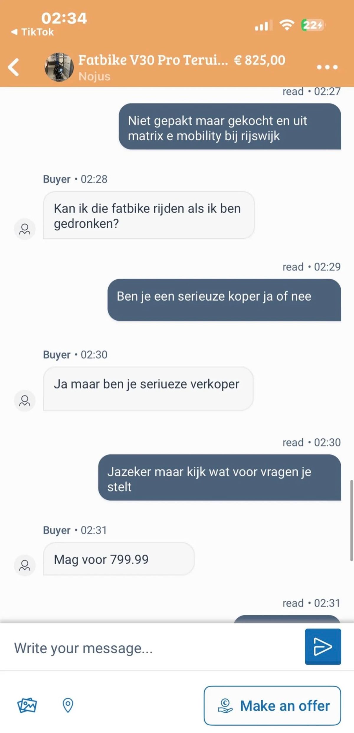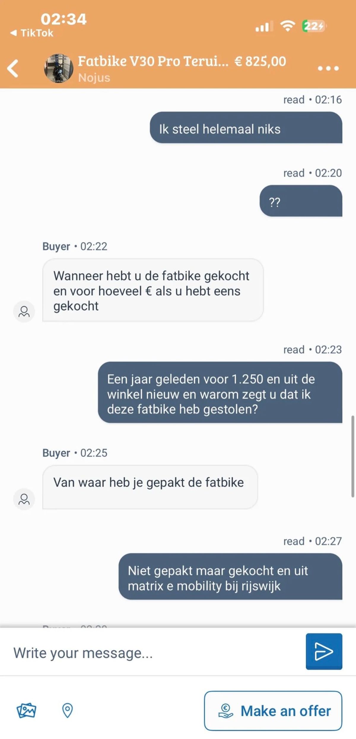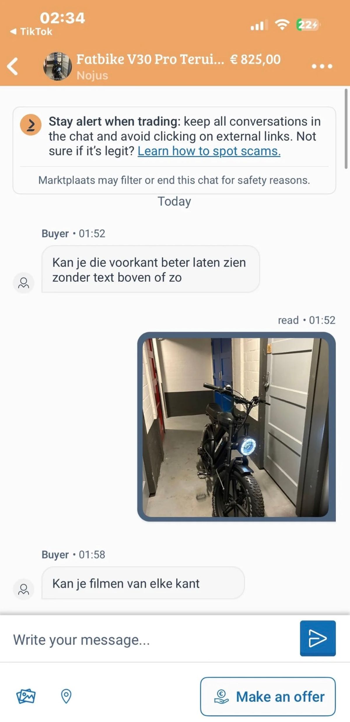 Dit is hoe een gemiddeld gesprek tussen twee fatbike-liefhebbers verloopt in de Marktplaats-chat (7 screens)
