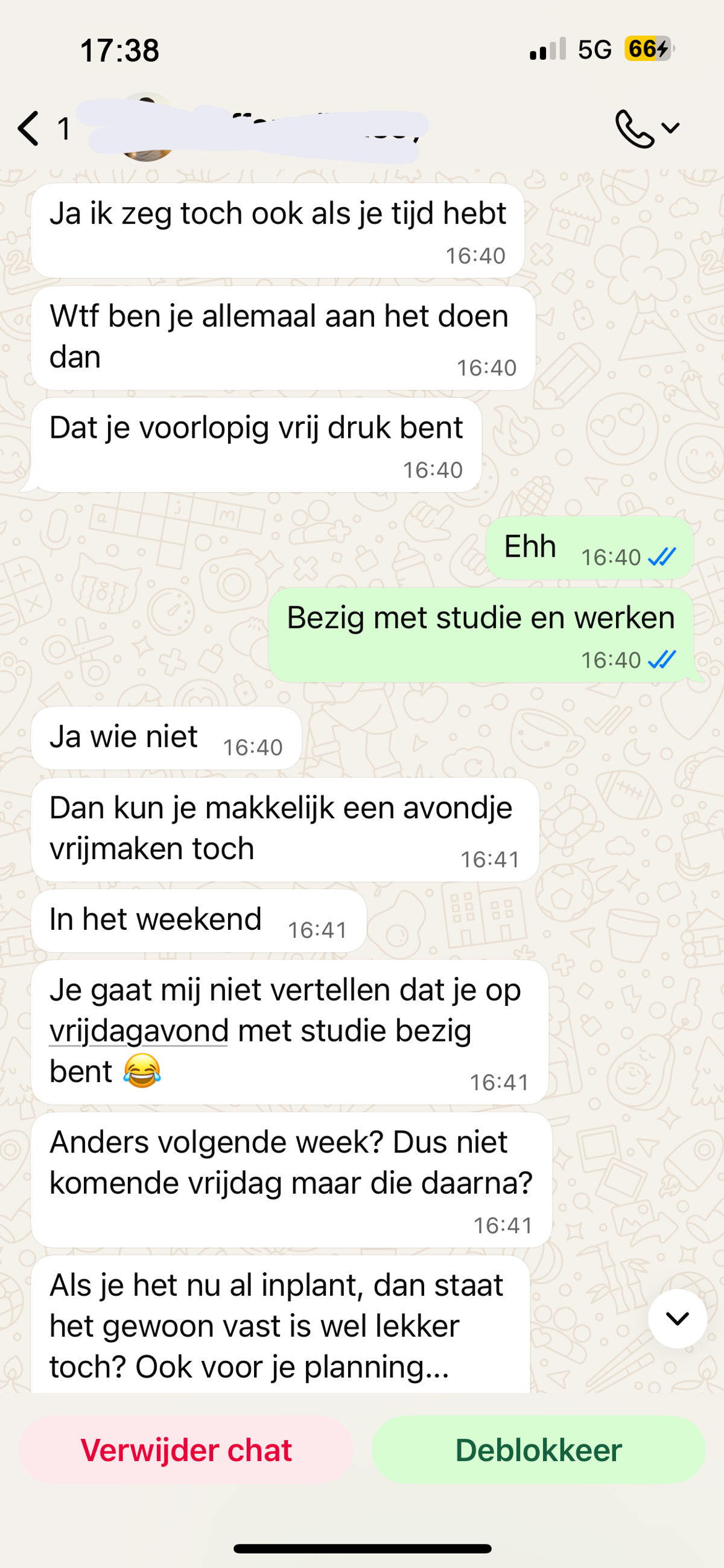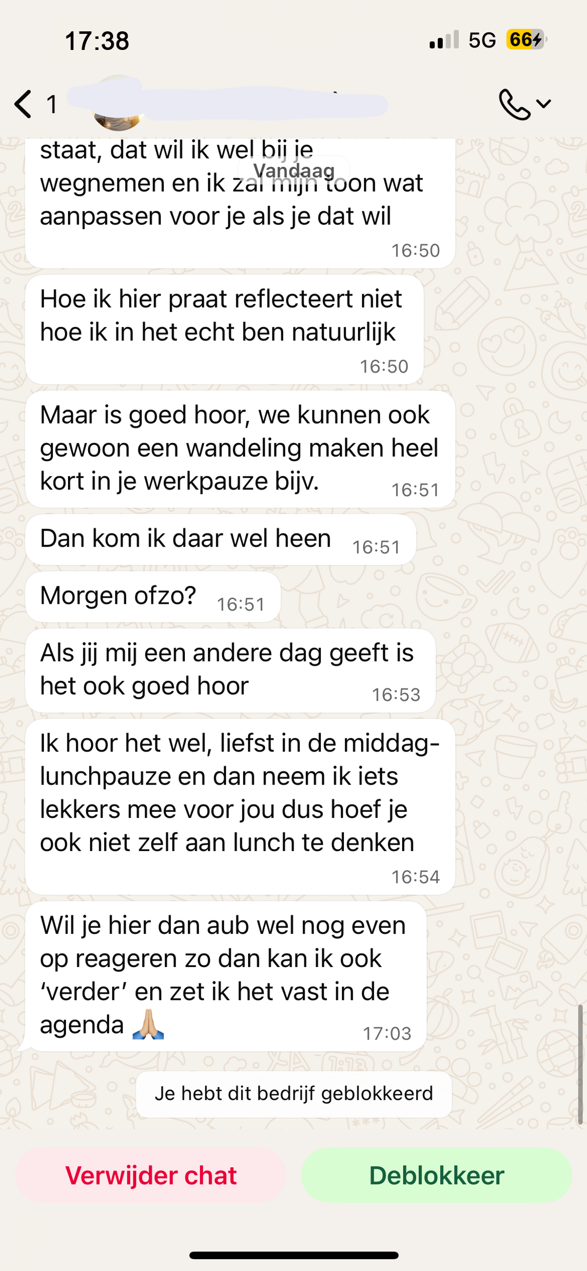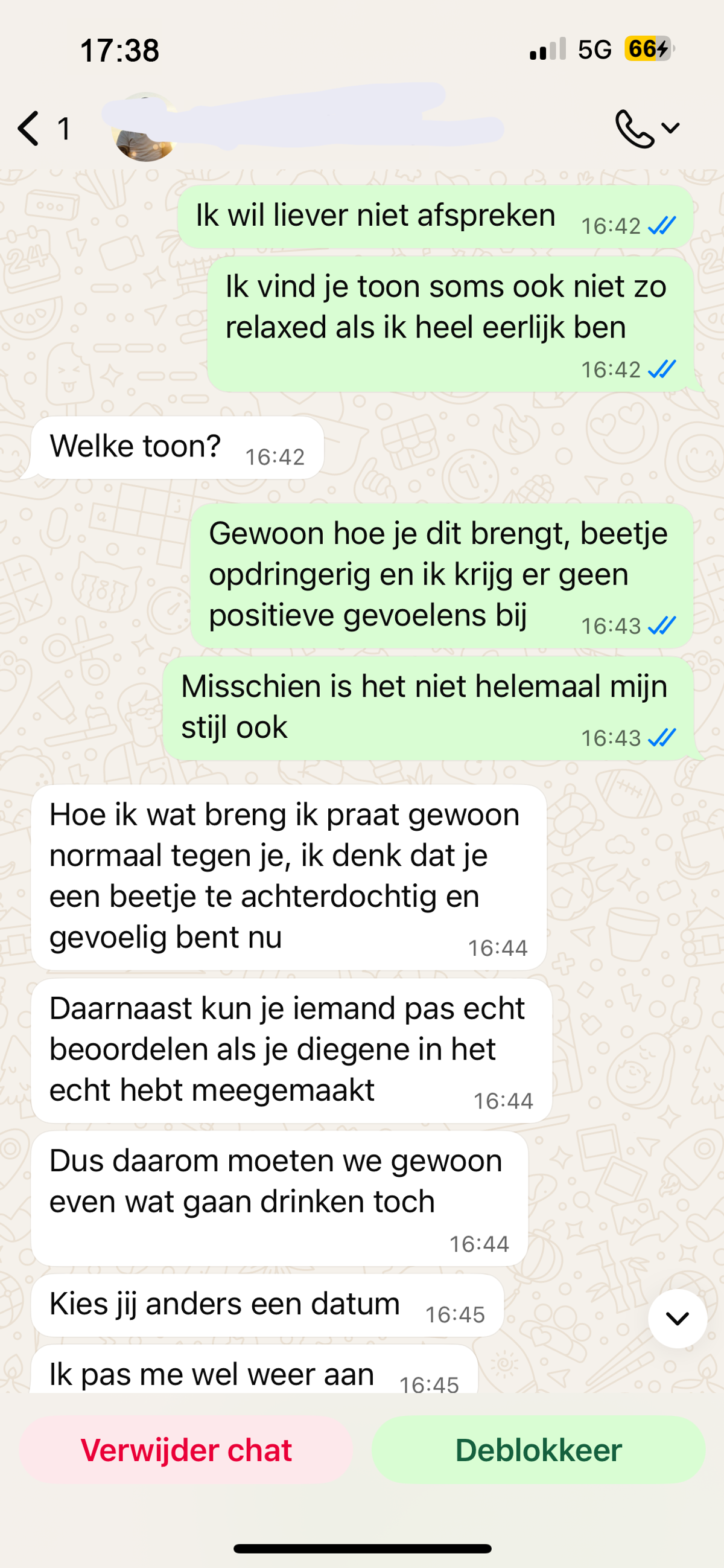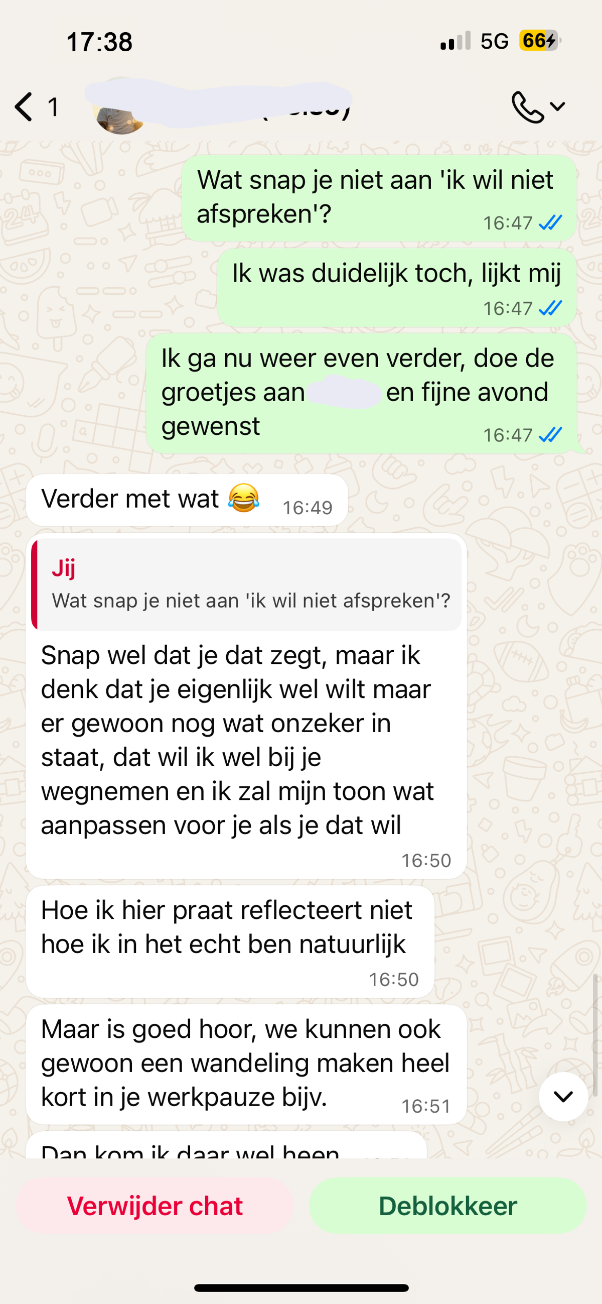Man probeert afspraakje te regelen met een vriendinnetje van zijn collega maar met deze dwingende manier van praten gaat dat helaas niet echt werken (6 screens)