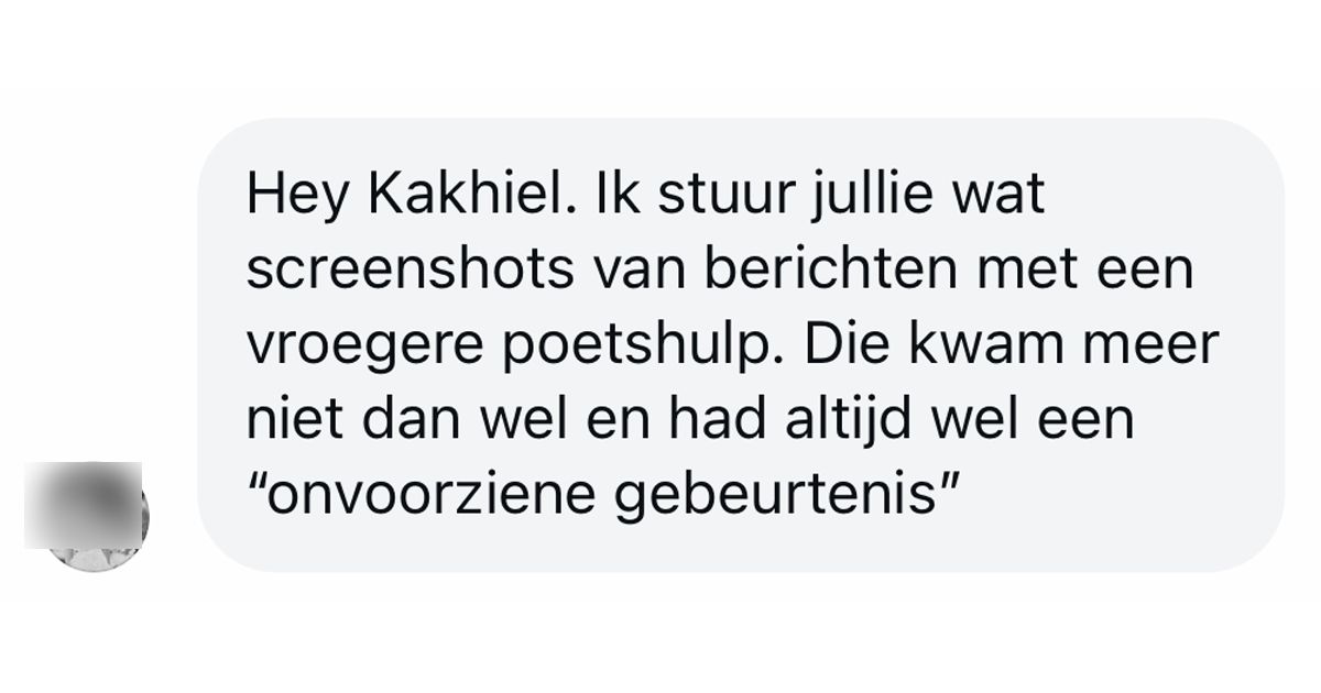 Deze schoonmaakhulp heeft zo vaak een 'onvoorziene gebeurtenis' dat hij vaker niet dan wel kan komen poetsen (6 screens)
