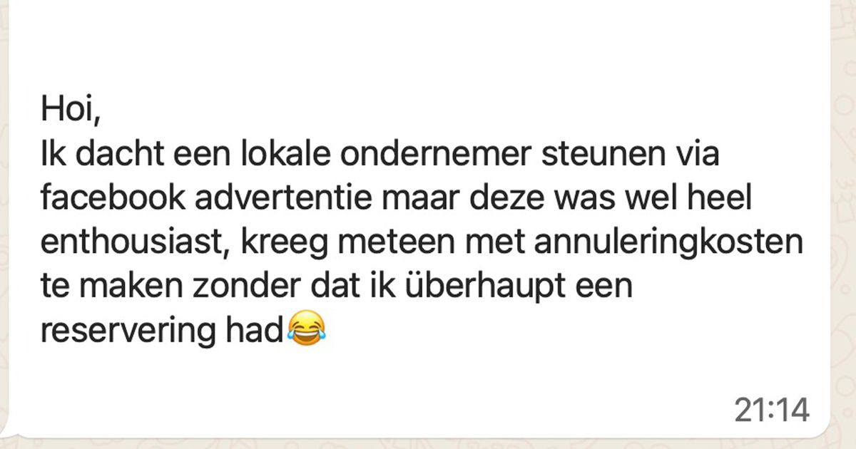 Man wil lokale ondernemer steunen door zijn auto te laten poetsen en krijgt gelijk te maken met annuleringskosten na een gesprek van een paar zinnen waarin niet eens echt een afspraak is gemaakt (5 screens)