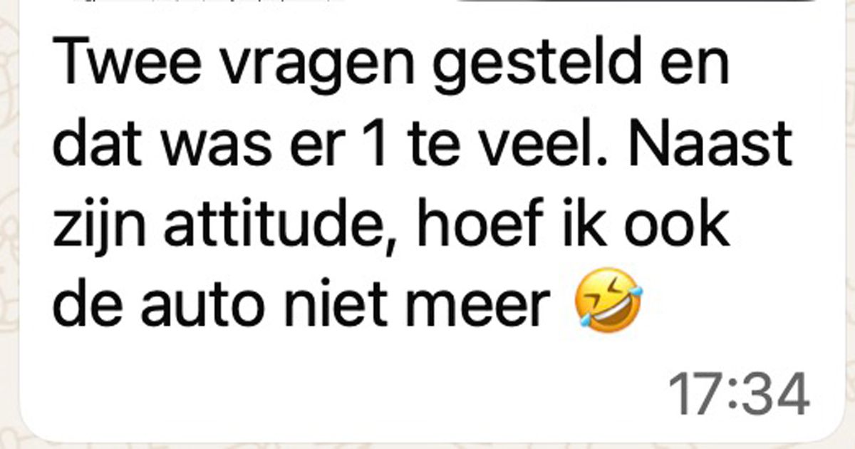 Vrouw stelt 2 vragen over een auto aan iemand op Marktplaats en wordt uit het niets meteen helemaal verrot gescholden (5 screens)