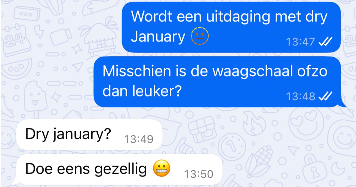 Man wordt een maand lang verbannen uit zijn vriendengroep omdat hij meedoet aan Dry January (3 screens)