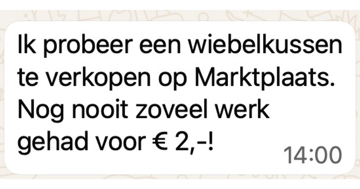 Man probeert een wiebelkussen te verkopen op Marktplaats en het gesprek met deze koper verloopt gelukkig eindelijk een keer lekker luchtig (14 screens)